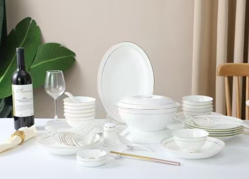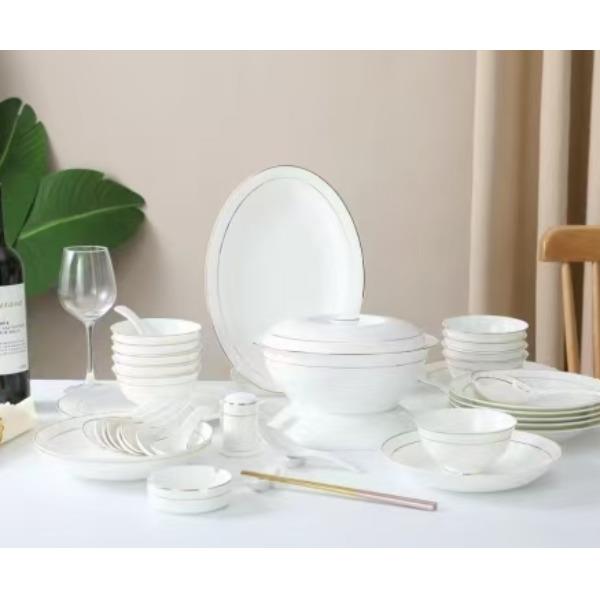 芈瓷金丝六十二件套骨瓷餐具