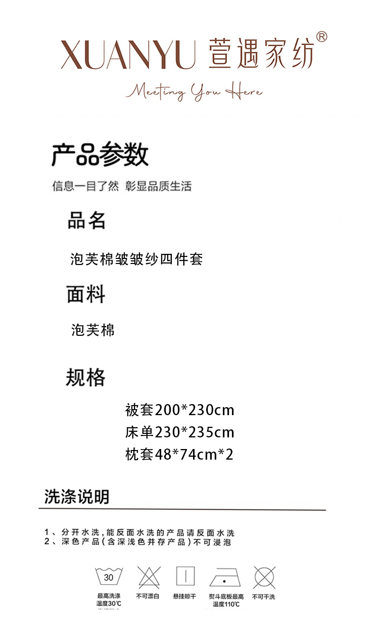 萱遇家纺泡芙棉皱皱纱四件套X-T8012