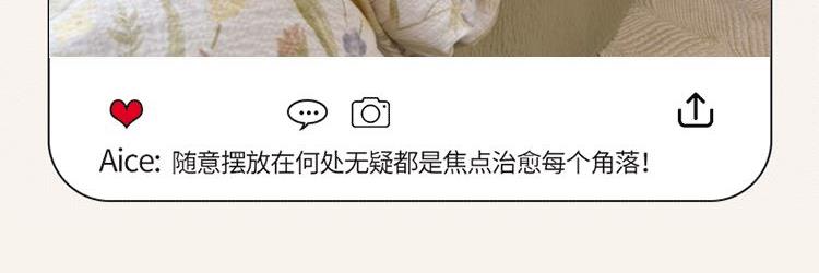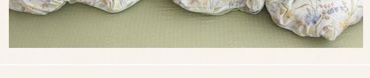 被套:200*230cm 床单:230*235cm 枕套:48*74cm*2 面料:泡芙棉 执行标准:GB/T22796-2021 安全类别:GB18401-2010 B类 1.面料采用生态亲肤棉,新型环保浆料活性印染,不褪色,不缩水,其生态环保理念在很大程度上满足了消费者对床品舒适度的高要。 2.生态棉面料,手感柔软,舒适质感丰厚,而且有厚重感,容易打理。整体套件,色彩丰富自然,阵线细致密实,错落有序,更显档次。