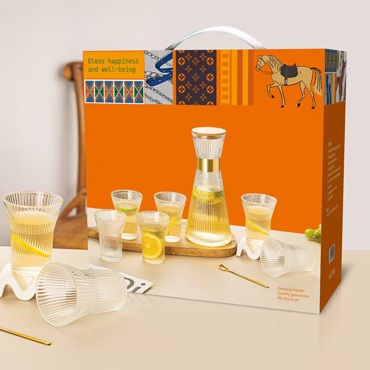 货号:AIZLV126 材质:玻璃 配置:1壶+6杯 条码:697449275126 彩盒尺寸:25.1*15*25.1cm 全新的设计造型,精品质量,安全、健康、卫生,外观新颖,颜值大气,包装安全,性价比高,是促销、商务、会议和福利礼品。