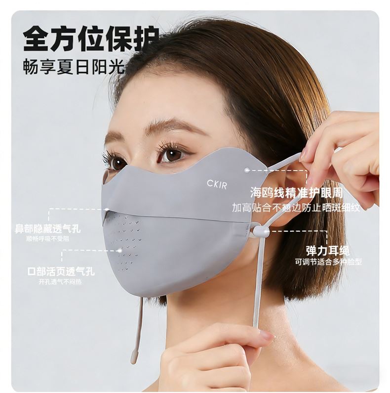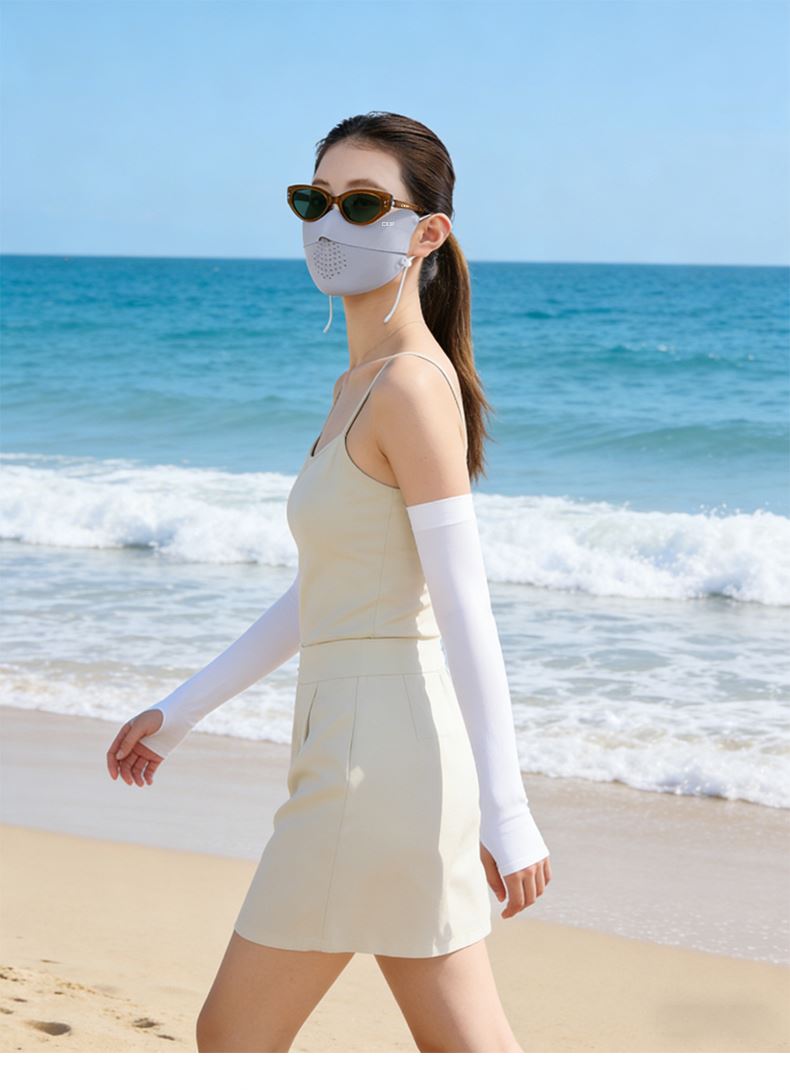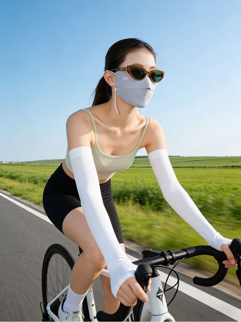 墨镜阻隔眼部紫外线,口罩覆盖面部、下颌与颈部,冰袖防护整条手臂,三重防护形成无死角防晒屏障,有效抵御 UVA/UVB