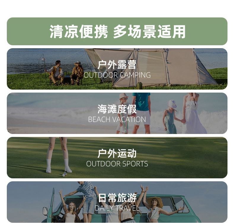 通勤、骑行、露营、海边度假等场景通用,一套满足日常与户外防晒需求