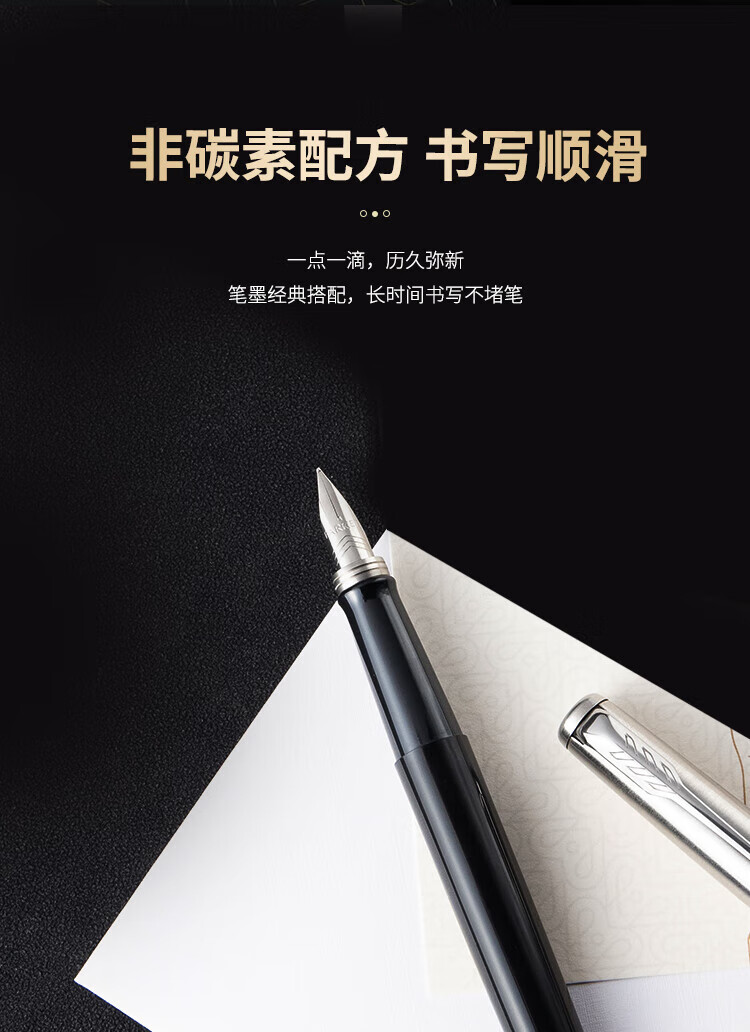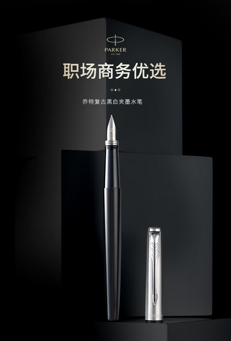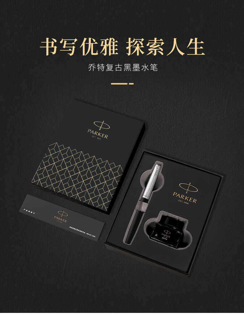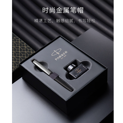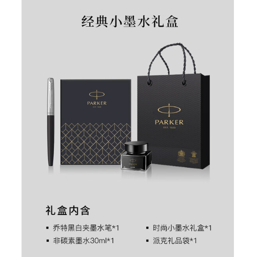 派克乔特复古黑白夹墨水笔+深灰小墨水礼盒
