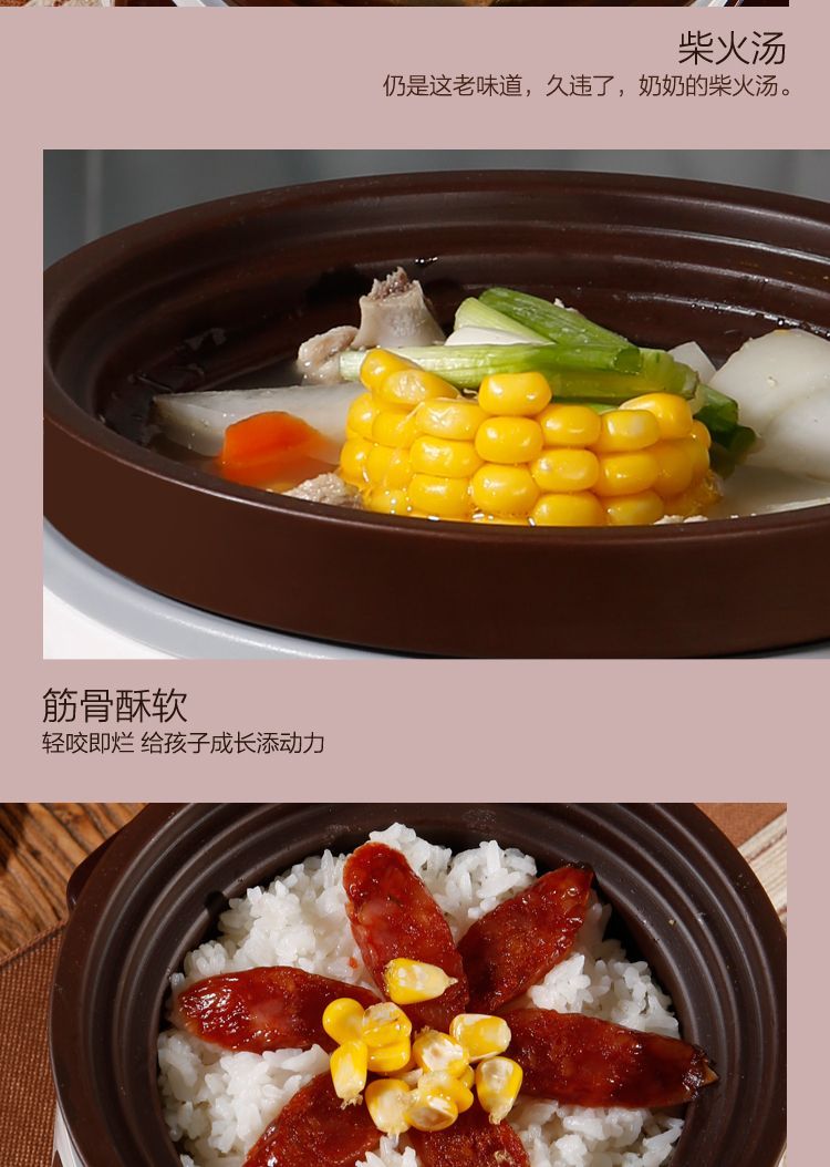 额定功率:120W 额定电压:220V 产品颜色:紫砂款本色 主机容量:1L 产品款式:微电脑智能 包装清单:主机、透明盖、蒸格、电源线、说明书 特色功能 1、6大功能,可预约定时;智能免看管; 2、可视化锅盖,紫砂内胆,铝锅发热盘,导热快; 3、PP防烫把手,防止防烫双手; 4、自动断电,防干烧功能;一机多用; 5、箱装12台,代发网购,集采彩盒包装