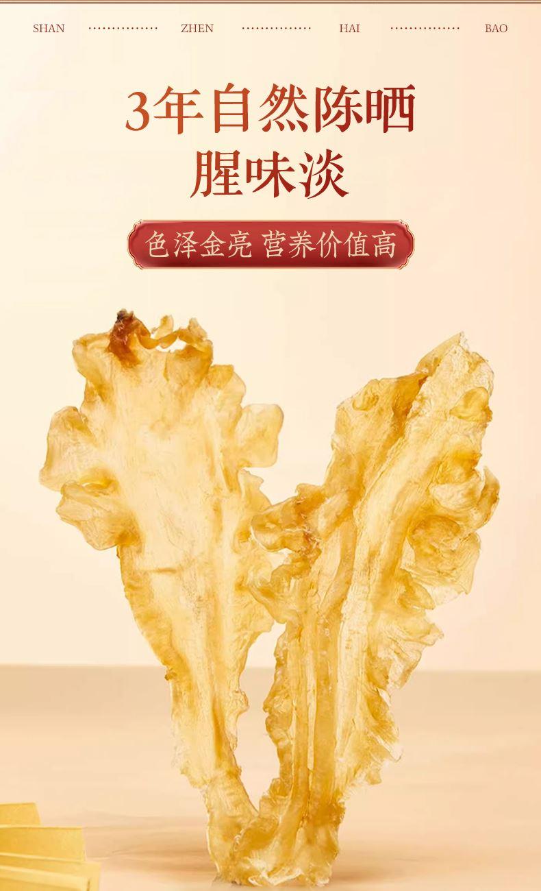 蔡府食美三宝礼盒200g(鳕鱼胶+西洋参+羊肚菌) 规格:200g(鳕鱼胶150g+西洋参20g+羊肚菌30g) 山珍海味滋补干货礼盒 食美三宝是一款精心组合的滋补礼盒,将北极鳕鱼胶、长白山西洋参、云南羊肚菌三种珍贵食材汇聚一堂,为消费者带来多方位的滋补体验。 鳕鱼胶富含胶原蛋白,对皮肤保养、骨骼健康等有很好的作用。 西洋参具有补气养阴、提神醒脑等功效,适合体质虚弱、容易疲劳的人群。 羊肚菌含有多种维生素、矿物质和氨基酸等营养成分,有助于增强身体素质。