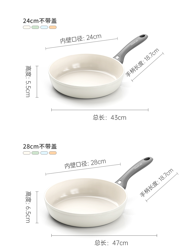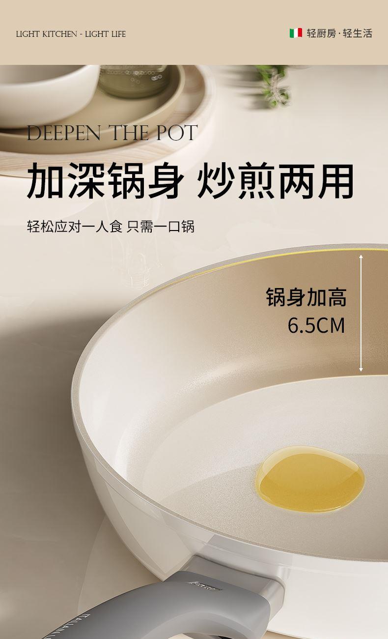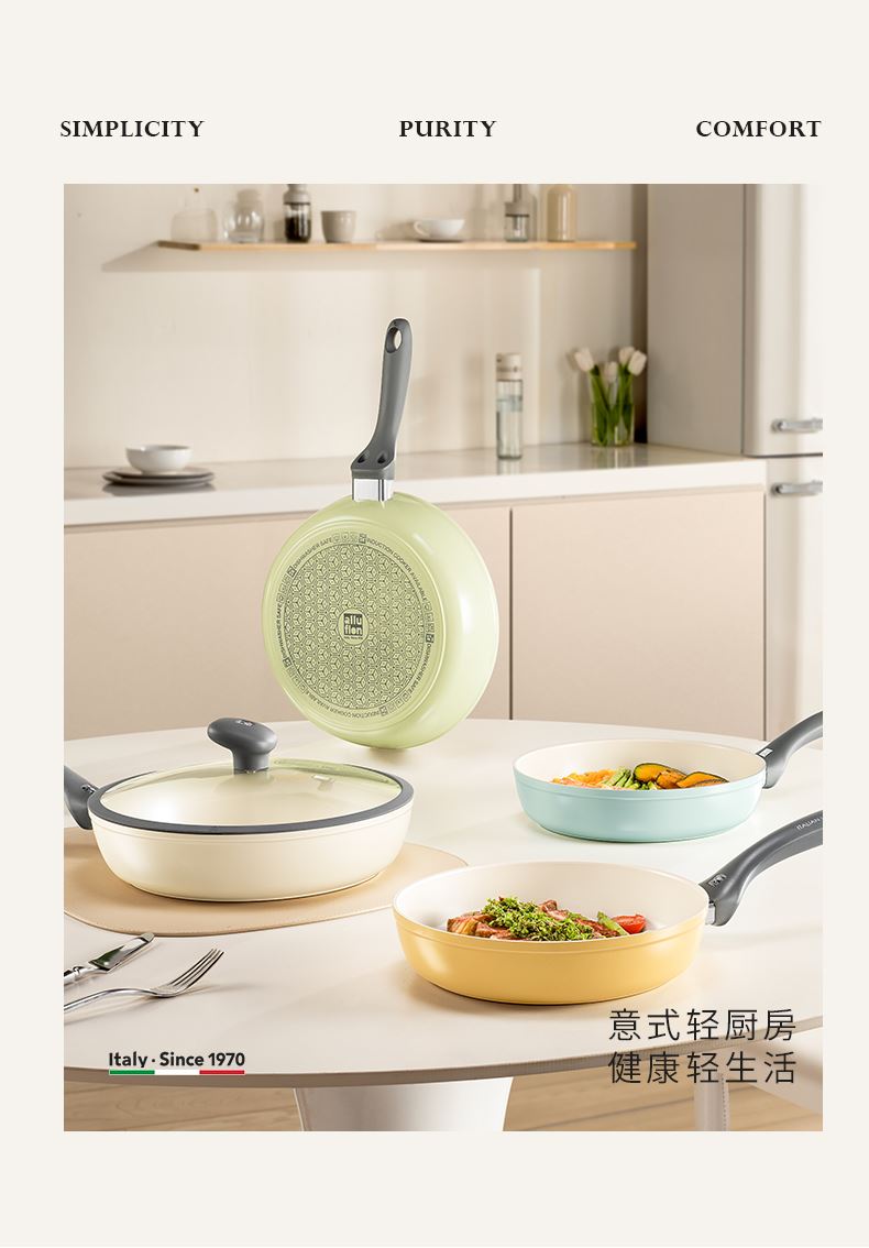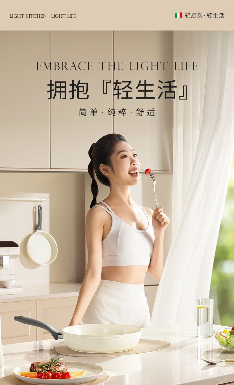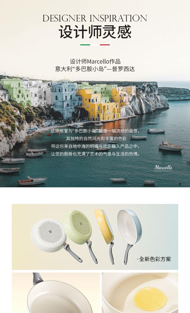 产品规格:28cm 产品颜色:蓝色/绿色/橙色/白色 产品货号:2331150328 1、超轻量不粘锅、单手可颠 2、锅身外陶瓷工艺、易清洁 3、锅体无铆钉结构、无卫生死角 4、硅胶玻璃盖、可视烹饪微压锁鲜
