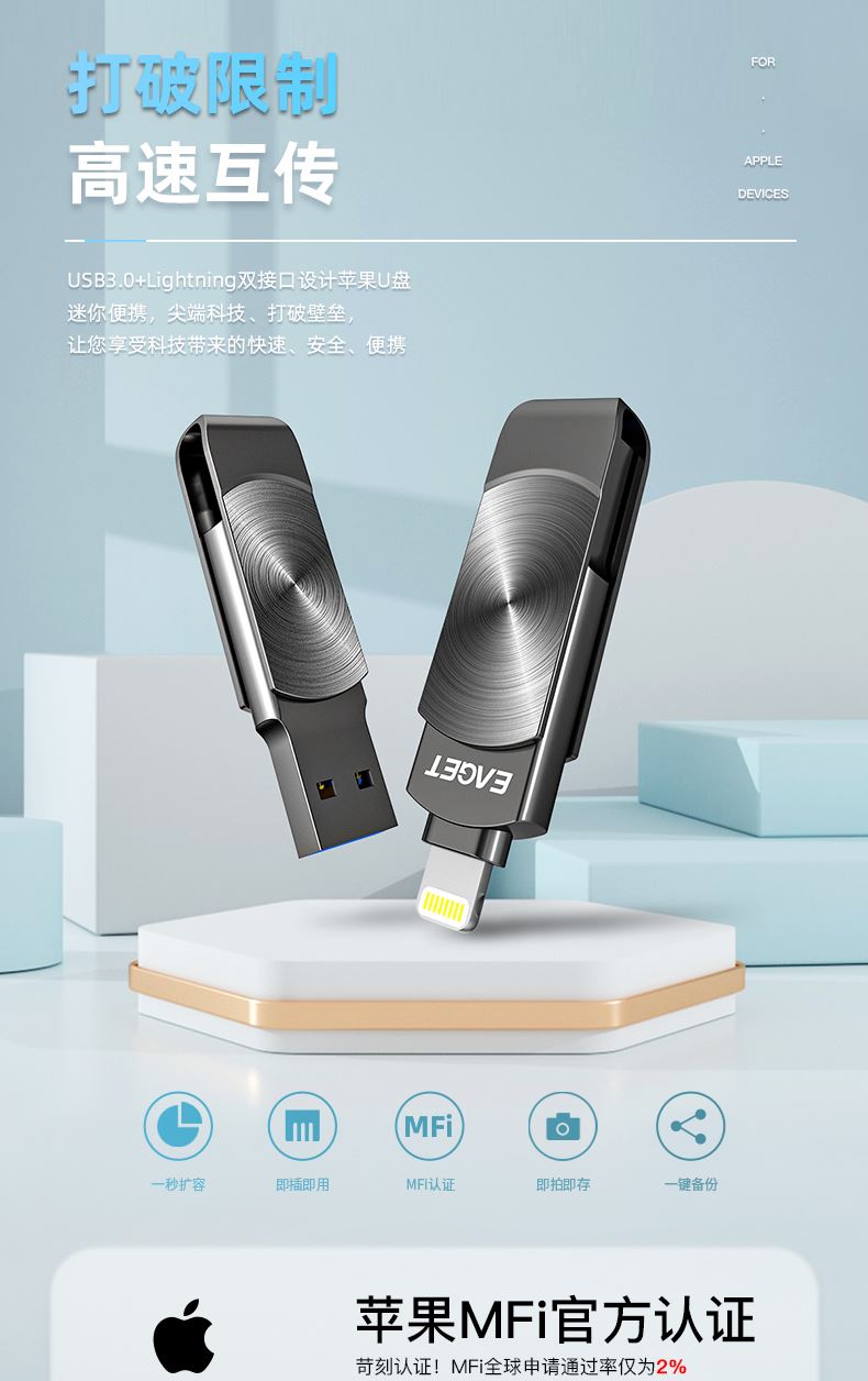 (EAGET)忆捷i66Plus苹果U盘手机电脑两用64G