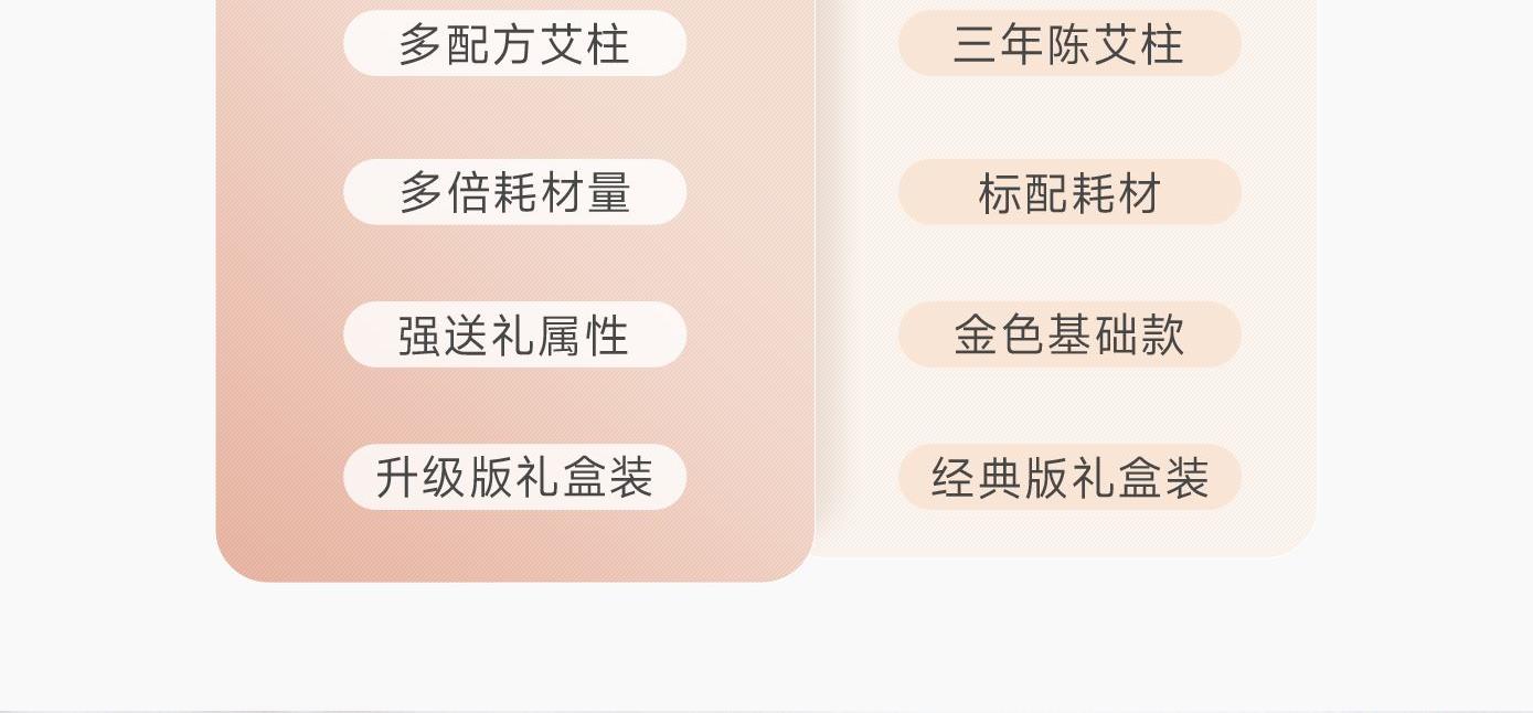 1、砭石推刮,明火艾灸,温感舒适,出痧更快; 2、三年陈艾+祛湿、养元益气多种草本专研配方艾效更明显; 3、搭配甄选植萃艾草、薰衣草、玫瑰3种精油,多多倍好材量,刮灸搭配养愈双效深层呵护; 4、升级版礼盒包装,视觉+实用组合,送礼佳品;