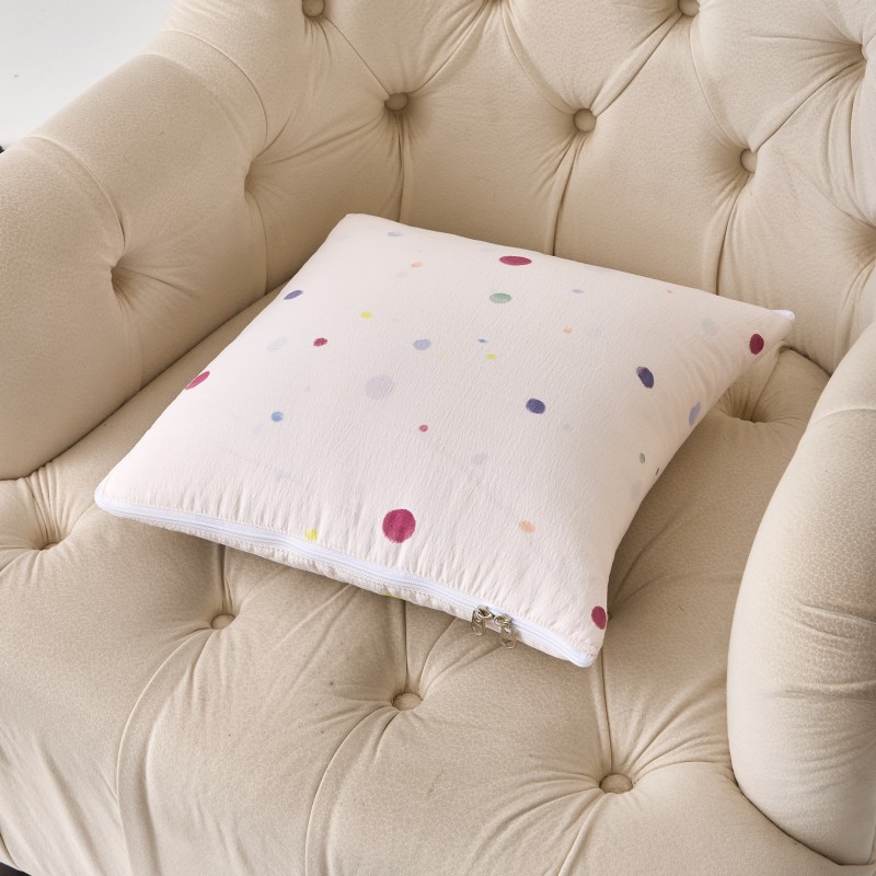 规格:40*40cm±5cm 展开:105*150cm±5cm 面料:泡芙棉 填充: 羽丝棉 执行标准:GB/T22796-2021 安全类别:GB18401-2010 B类 1.采用短毛绒面料,颜色鲜艳、丰富、美观大方,手感光滑流畅,洗涤后不收缩。 2.填充环保羽丝纤维,轻薄透气,简约而不简单,适合贴身覆盖, 3.抱枕方便收纳,可作为家居抱枕。