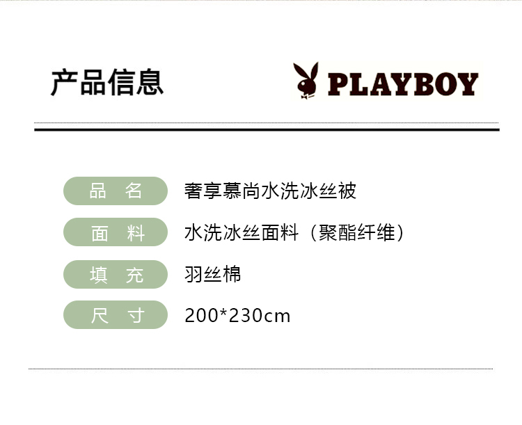 花花公子奢享慕尚水洗冰丝被PB-26B203