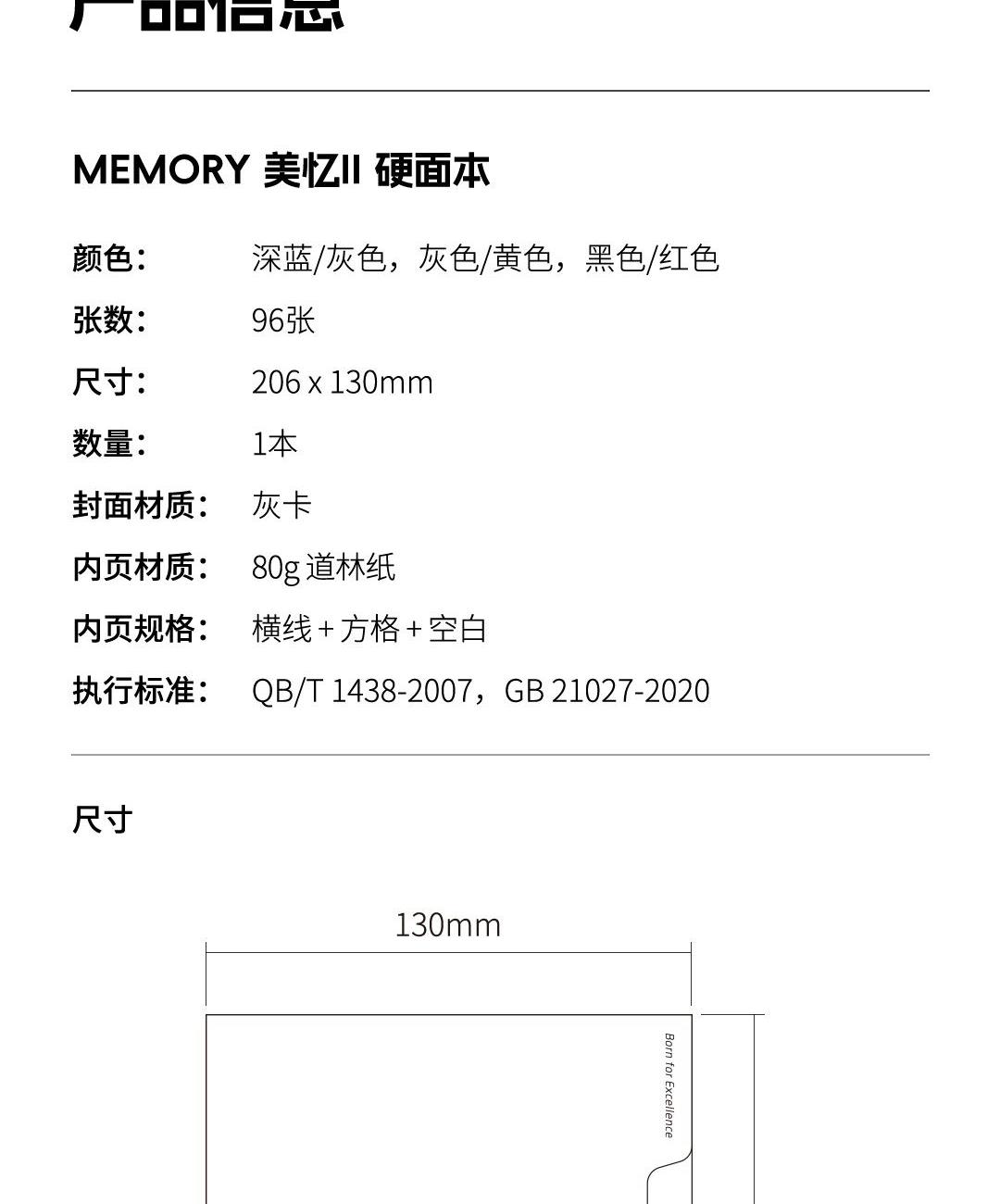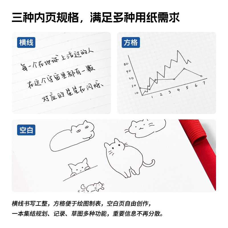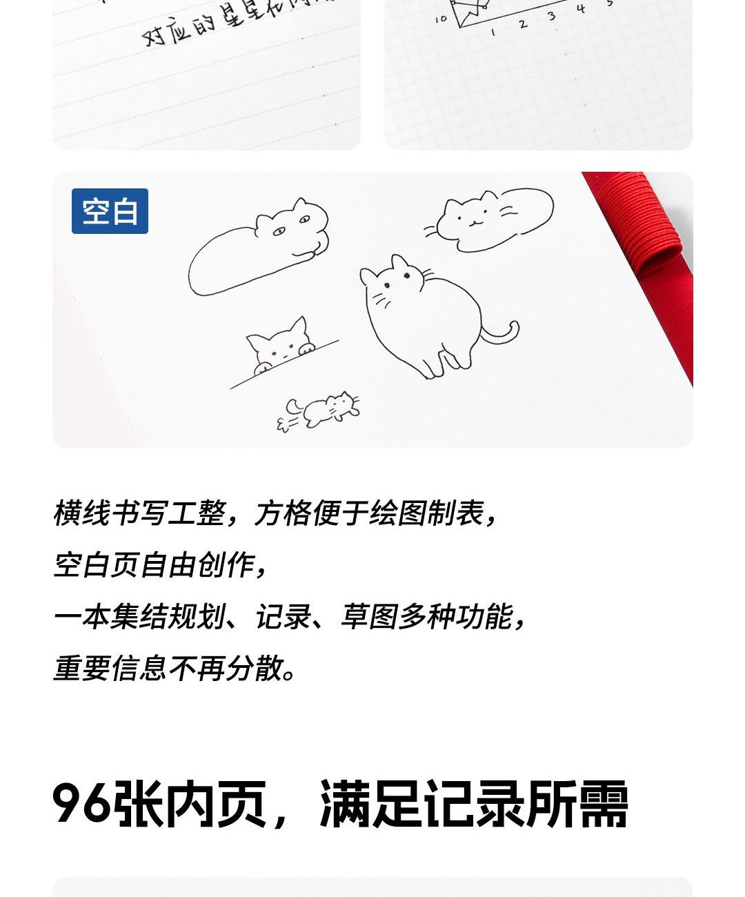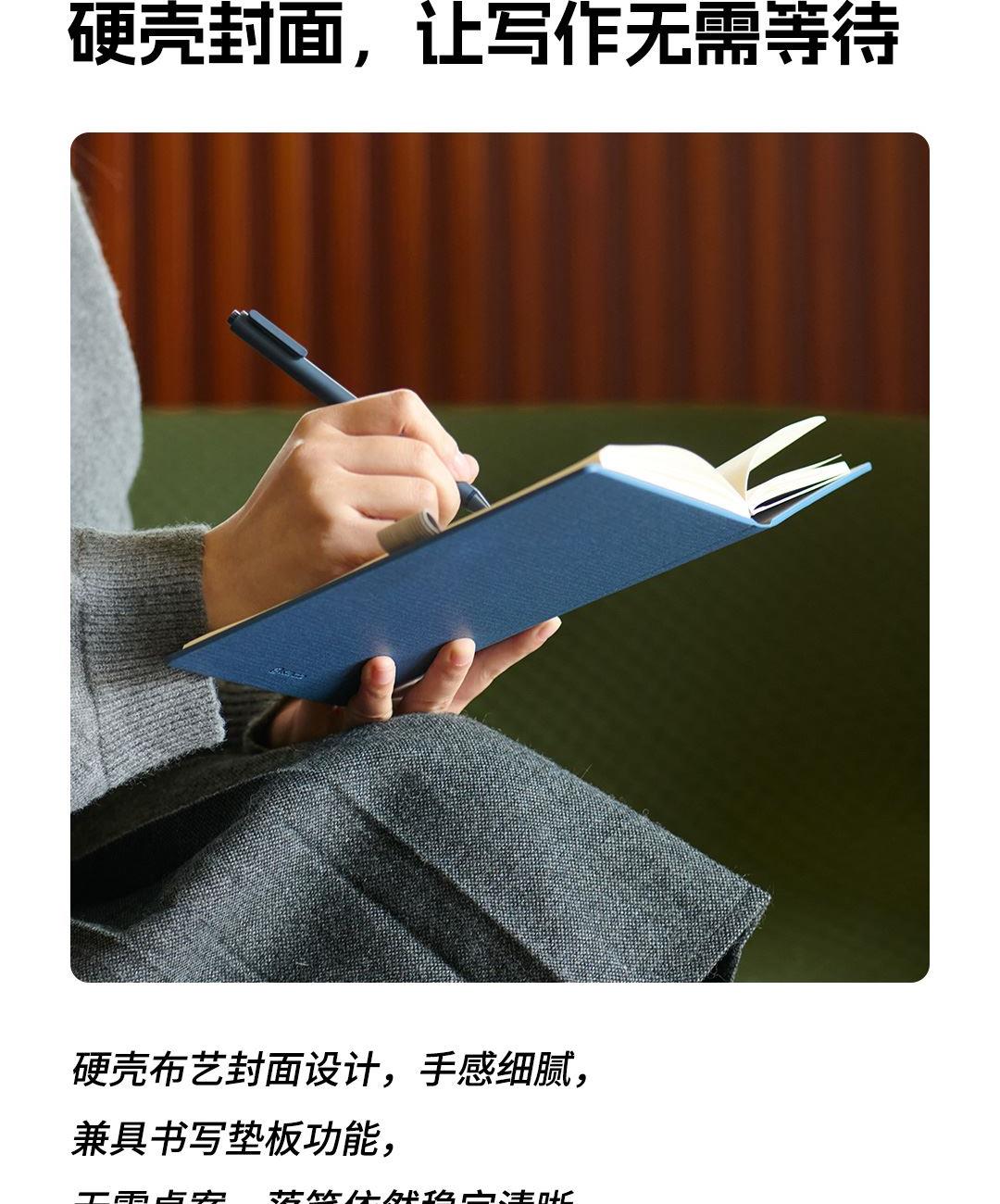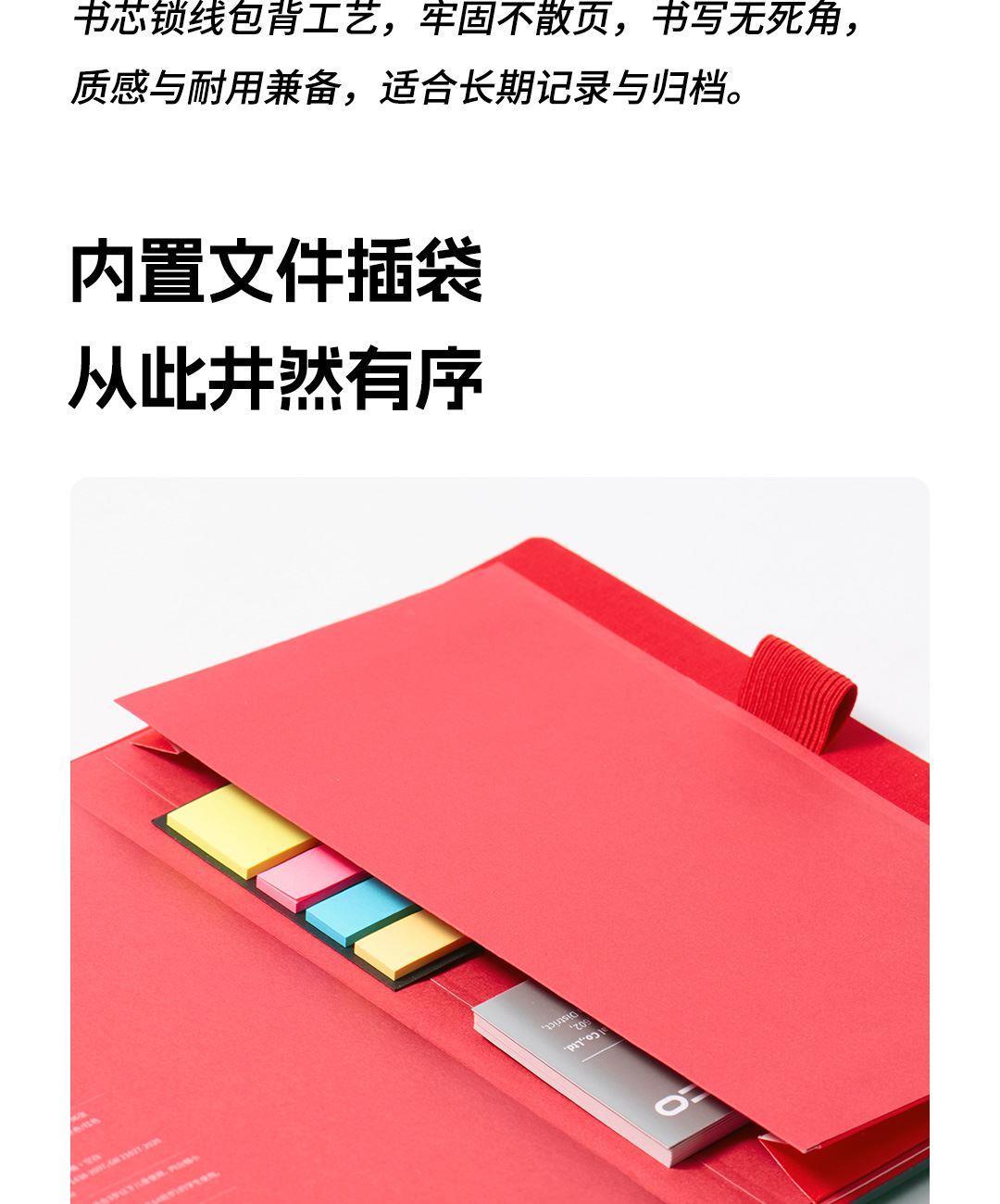 尺 寸:210*148 mm 材 质:布+灰卡(封面), 80g道林纸(内页) 外观颜色:灰色/深蓝/黑色 1、硬壳布艺封面设计,手感细腻,随手书写也稳如垫板。 2、书芯锁线包背工艺,不易掉页,长期使用依然牢固。 3、内置收纳式文件插袋,票据、小纸条随手收纳。 4、侧边一体式弹力绑带设计,方便插笔,外出携带更安心。 5、三种内页形式,满足规划、记录、绘制等多种需求。 6、每本含96张内页,是日常使用的理想容量。 7、采用80g道林纸,厚度适宜,不易洇墨透纸。 单本尺寸:单本入opp袋,210*148mm, 370g 货 期:7-10天发货(不含重大法定假日) 包装方式:单本入opp袋
