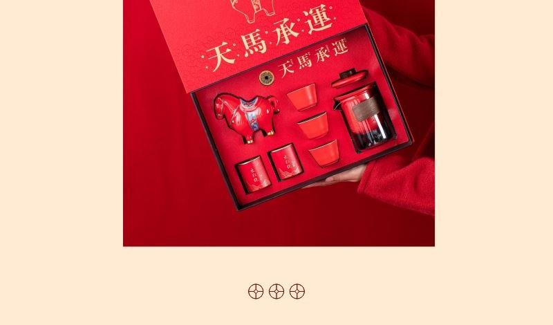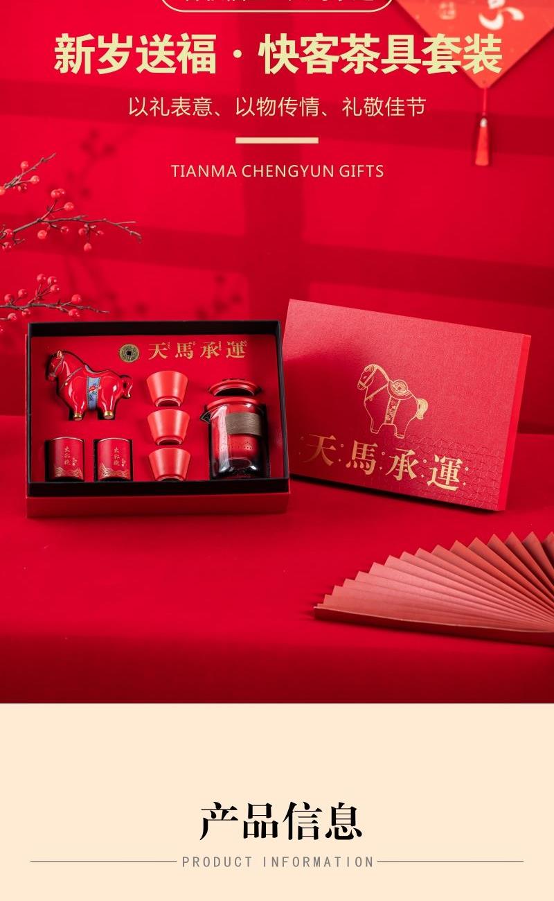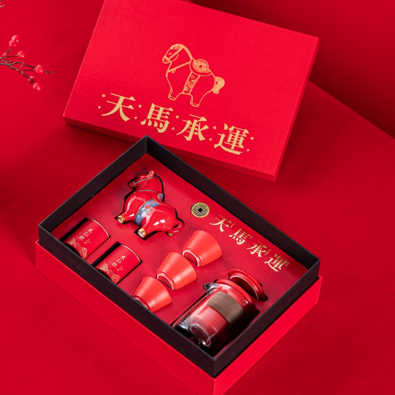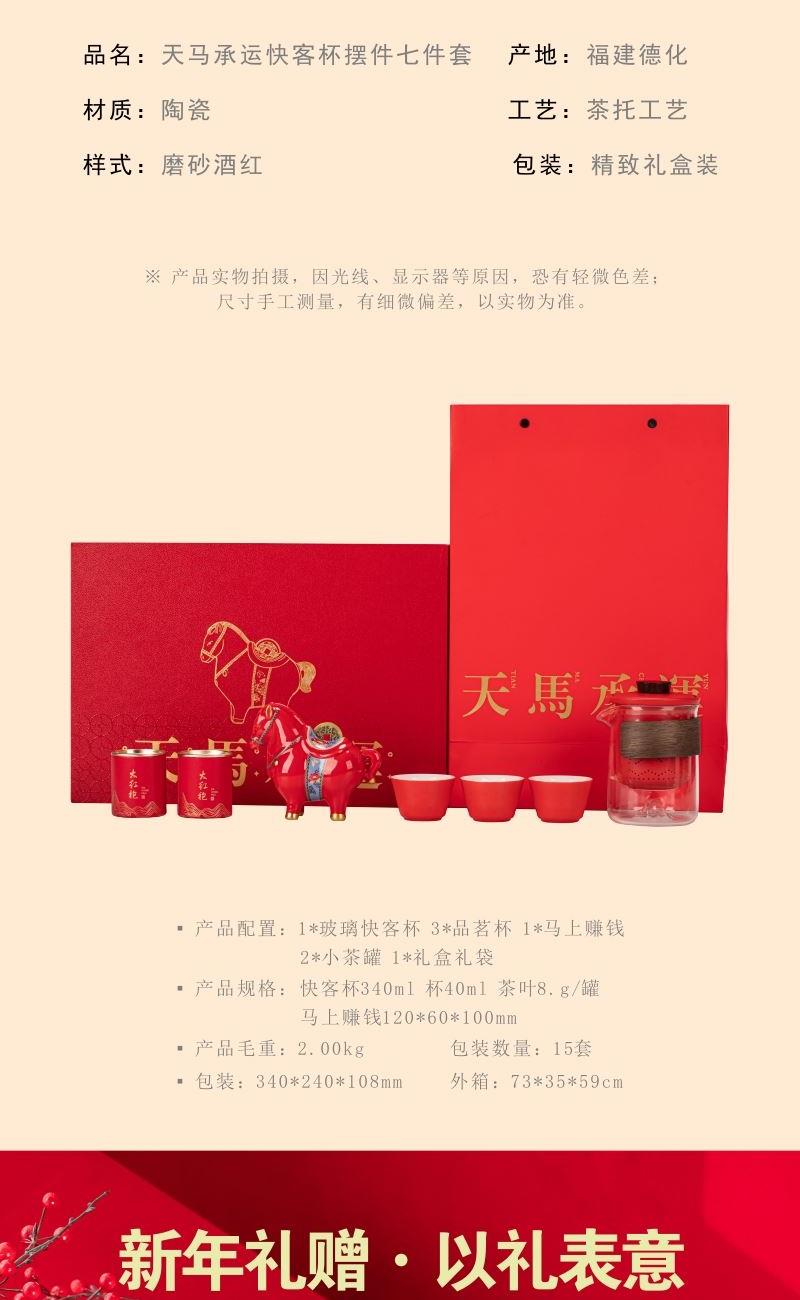 • 开门红年会茶具礼品天马承运快客杯摆件七件套