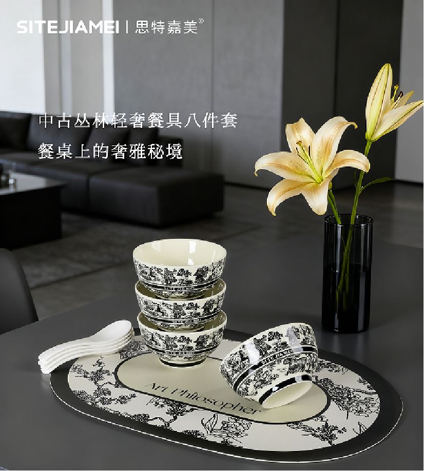 思特嘉美-中古丛林轻奢餐具四碗四勺