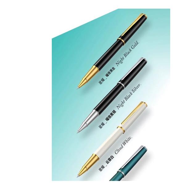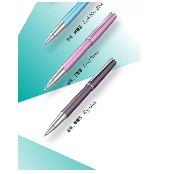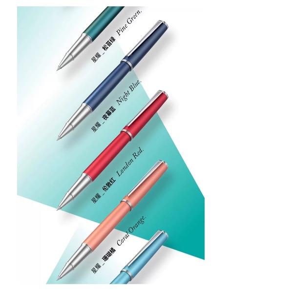 型号:星耀系列签字笔 类型:可替换芯宝珠笔 重量:墨水/宝珠笔25g/30g 颜色分类:曜夜黑金/曜夜黑银/黎雾灰/松苔绿/夜幕蓝/伦敦红/珊瑚橙/云雾白尼斯蓝/丁香雪 书写粗细:0.6mm 整笔材质:铝铜 笔盖:卡扣嵌套设计 笔握:24mm中距笔握 套餐类型:官方标配 包装方式:鸿运笔记本礼盒装 适用场景:送礼书写 适用人群:文艺青年 笔杆材质:金属笔身纹理:磨砂