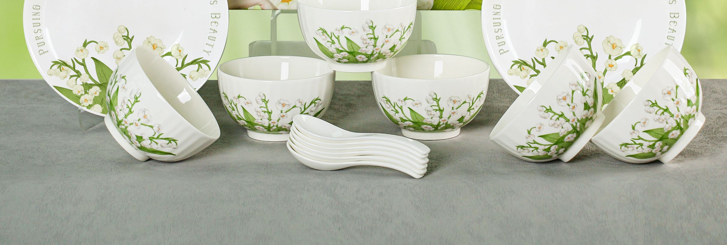 产品配置 4.5英寸碗*6 三弯勺*6 8英寸盘*2 商品条码 6973711743563 彩盒尺寸 46.8cm*23.5*cm*13cm 外箱尺寸 67.5×48.5×48.5cm