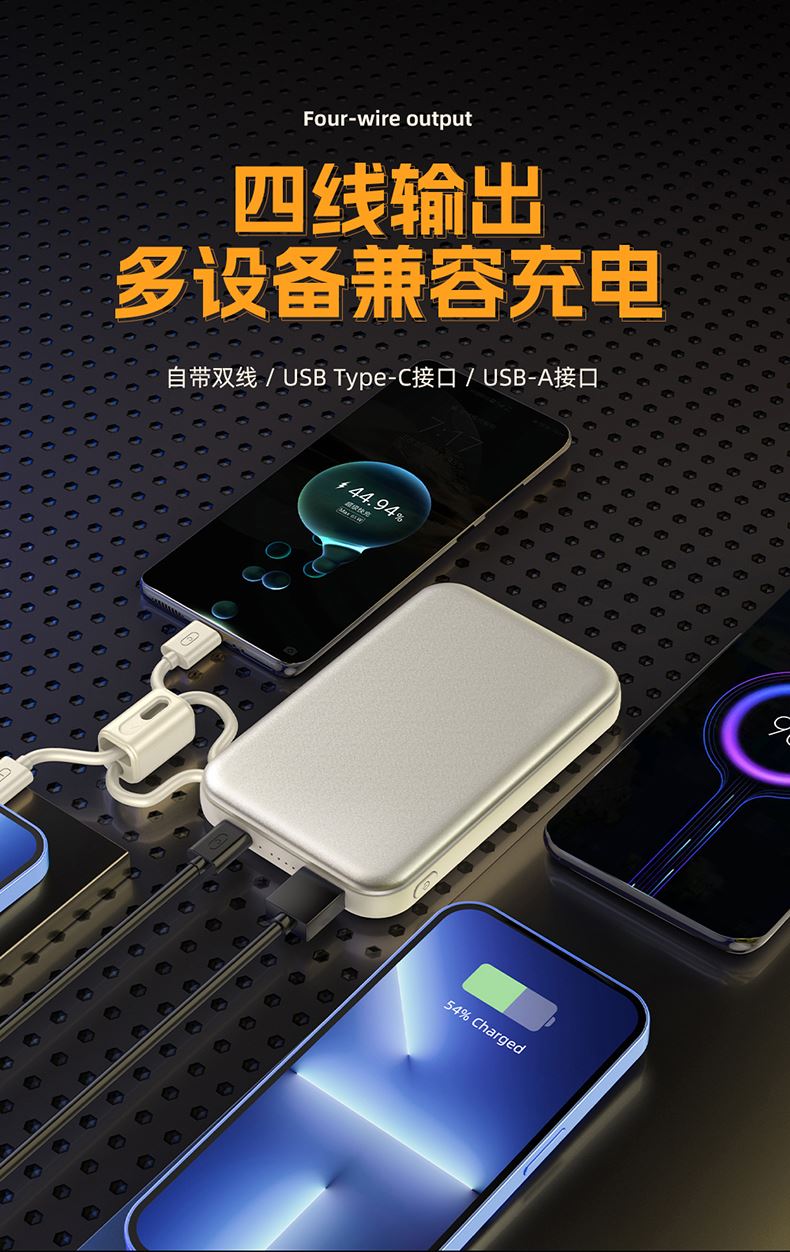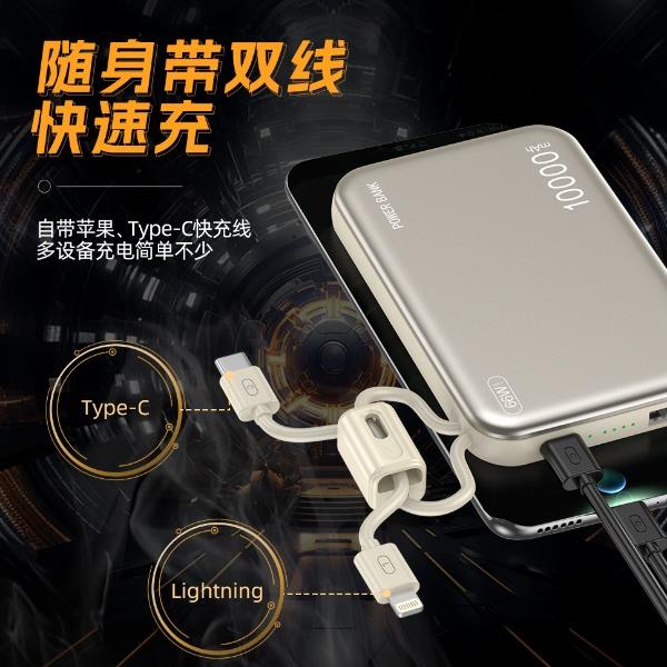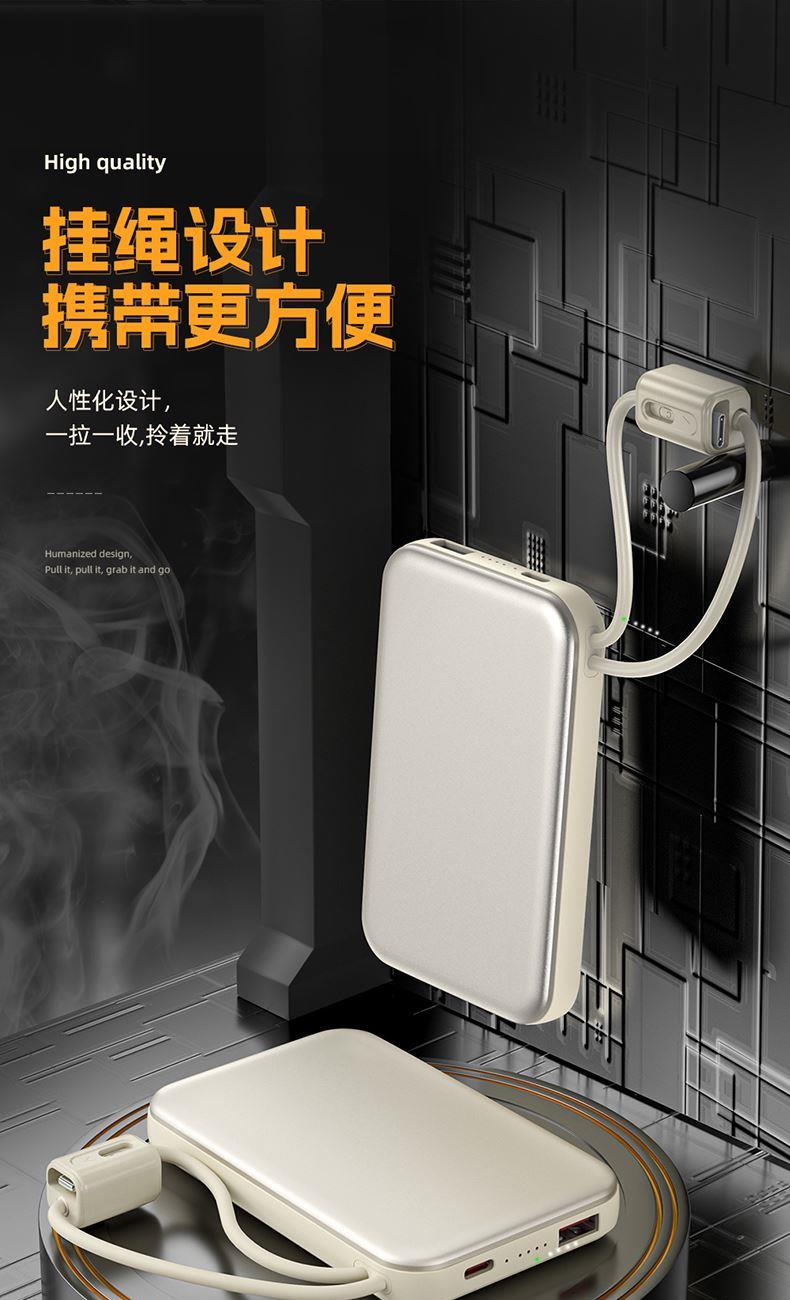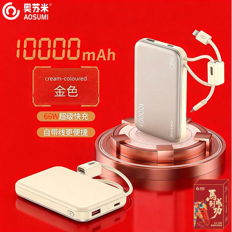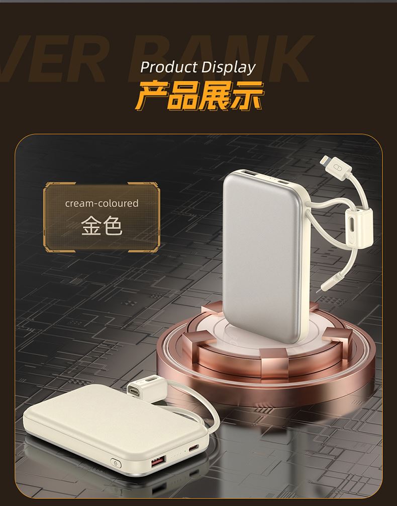 奥苏米3C认证刀锋22.5W铝合金商务移动电源R57N 型 号: R57N 电池 :聚合物*1pcs 电池类型 :聚合物动力电芯 容量:10000mAh / 20000mAh 材质 :ABS+PC 尺寸 :68*108*16mm 颜色 :常备米色 /蓝色/ 紫色 功能特点 简约设计风格,时尚大气; 22.5W超级快充,迅速充电; 10000mAh锂电池,澎湃动力; 自带苹果和Type-C充电线; 一输入三输出,支持苹果15手机 智能数显查看电量