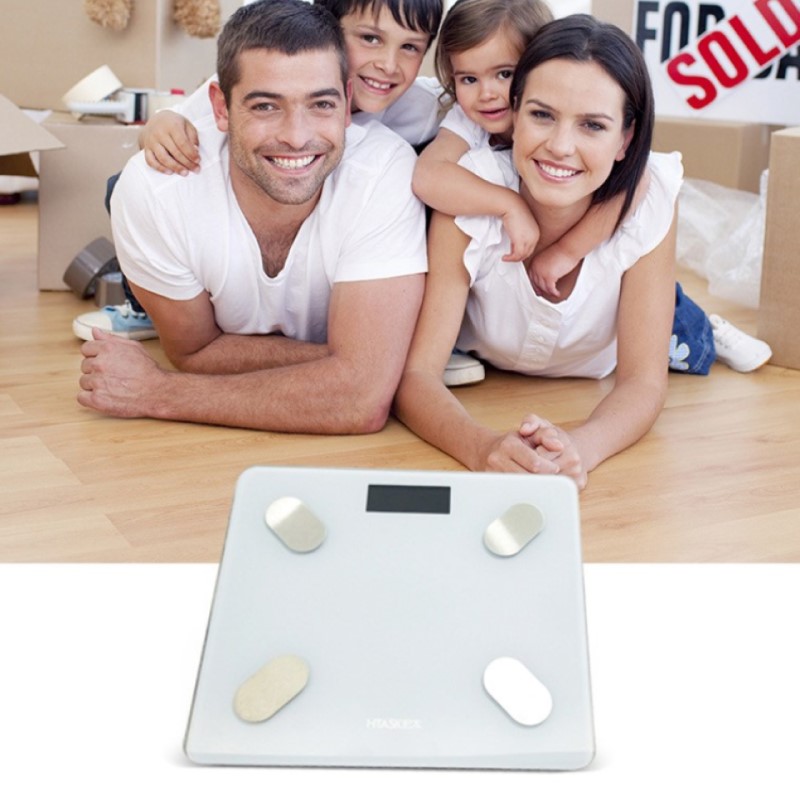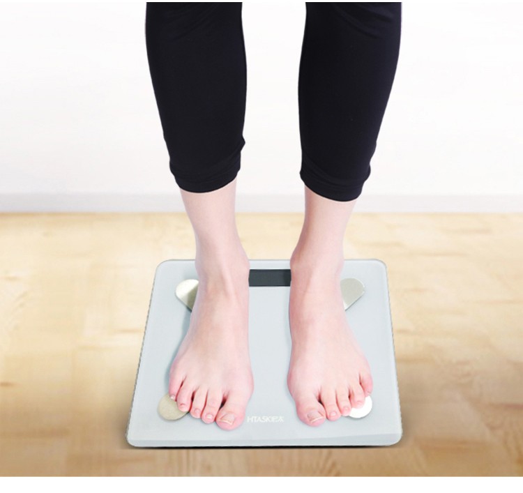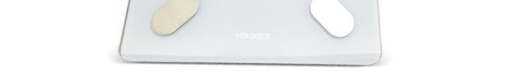颜色:白色 材质:钢化玻璃 尺寸:30*30*2cm 屏显:液晶屏显 利用秤体表面的电极片与用户的双腿接触,通过一定的安全电流,测量人体电阻(bio-impedance).然后基于输入的用户数据和测量得到的人体电阻,使用我们在广泛实验的得到的公式,测量人体脂肪百分比、人体水分百分比、人体肌肉百分比、骨骼重量等人体成分。