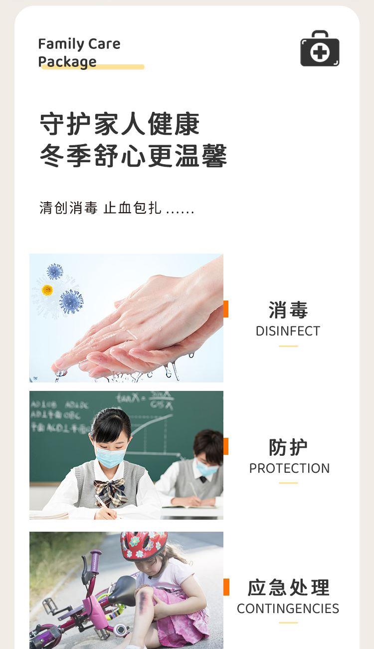 产品材质:300D灰色舞龙布(属牛津布) 产品规格:200*120*55mm 产品颜色:月影灰 产品配置:含5大类13种急救用品