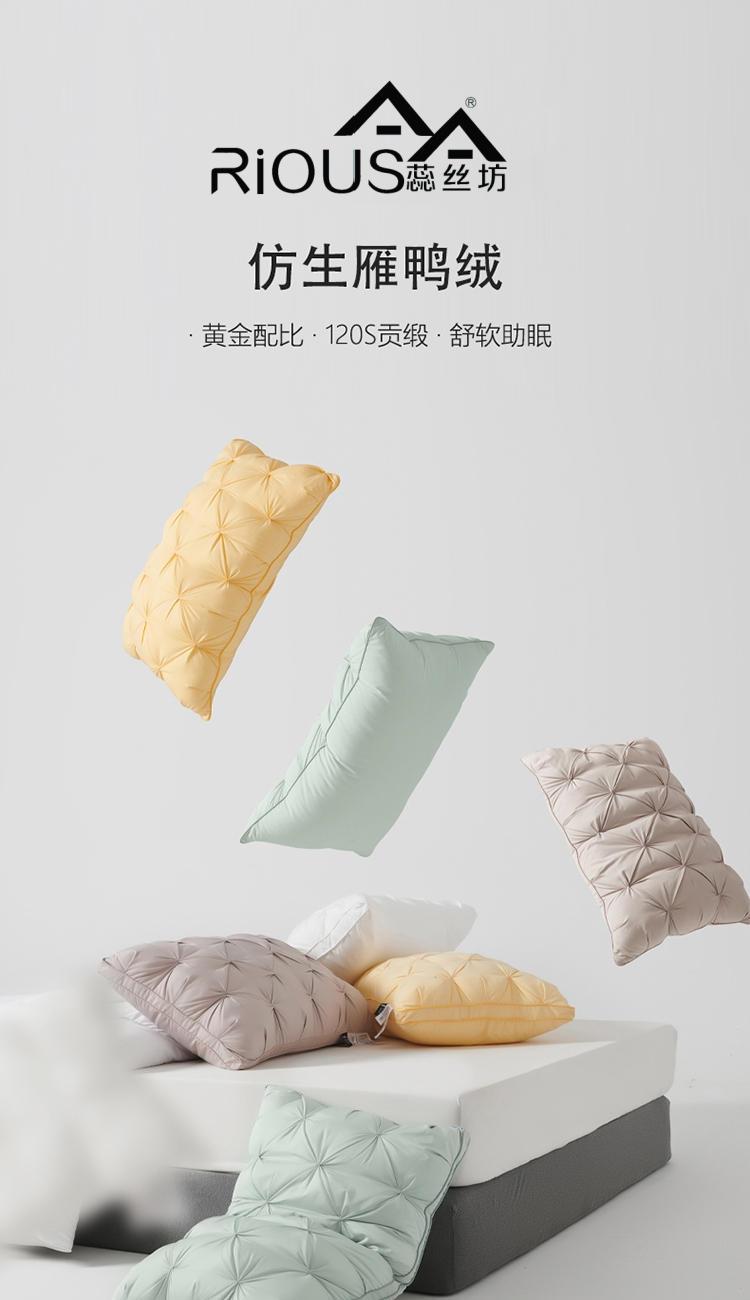 蕊丝坊家纺120S贡缎扭花面包羽丝绒枕