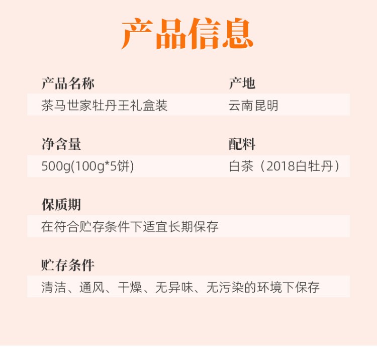 茶马世家牡丹王白茶礼盒装500g(100g*5饼)