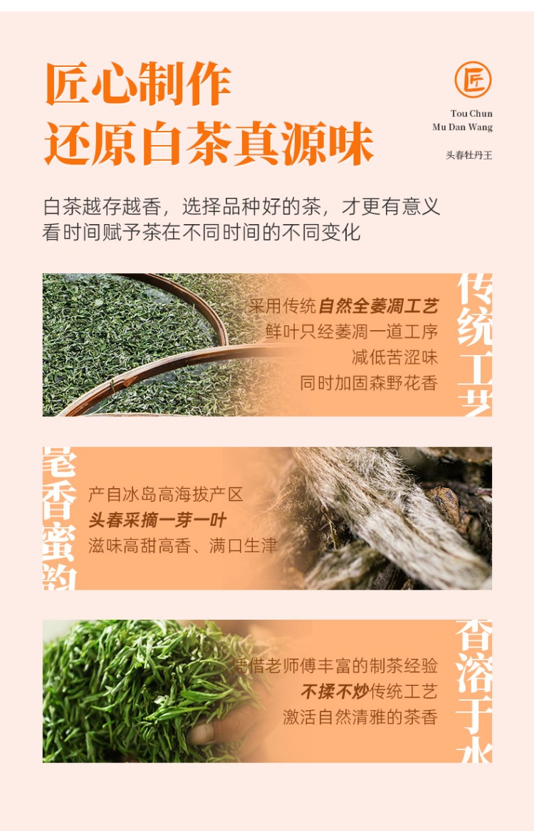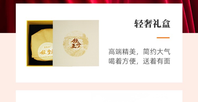 类别:牡丹王白茶 规格:500g 包装:礼盒装配手提袋 产品介绍: 1.2018头春牡丹王,冰岛核心产区 2.薄饼松压,轻掰易取,手工采摘,口感醇香 3.精美包装,送人自饮皆宜