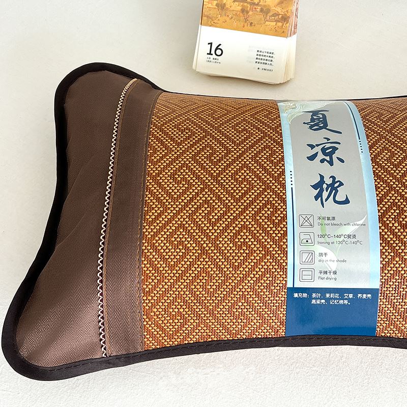 1:夏凉草本植物枕轻松入梦,素面冰藤枕凉爽泌人 2:凉感冰藤、舒爽亲肤、高密编织、不夹头发、凉而不冰、清爽透气 面料:无纺布+冰藤竹纤维 填充:荞麦壳 尺寸:36*56*4cm 包装:彩盒/礼袋