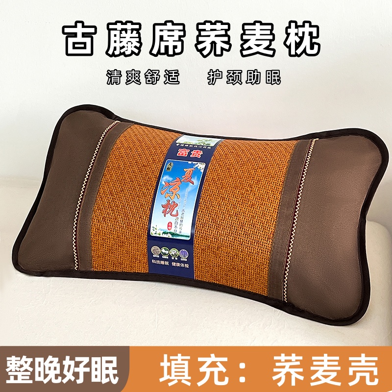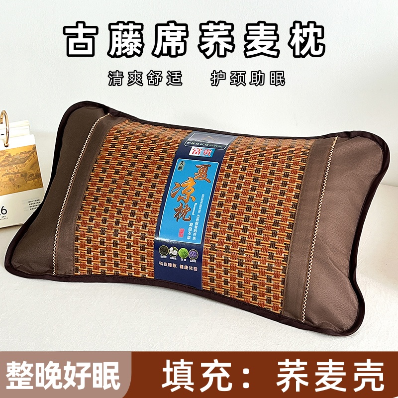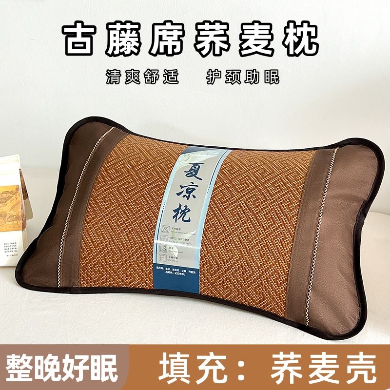 花花公子-家纺-新品夏凉清凉藤席荞麦枕头枕芯养身枕