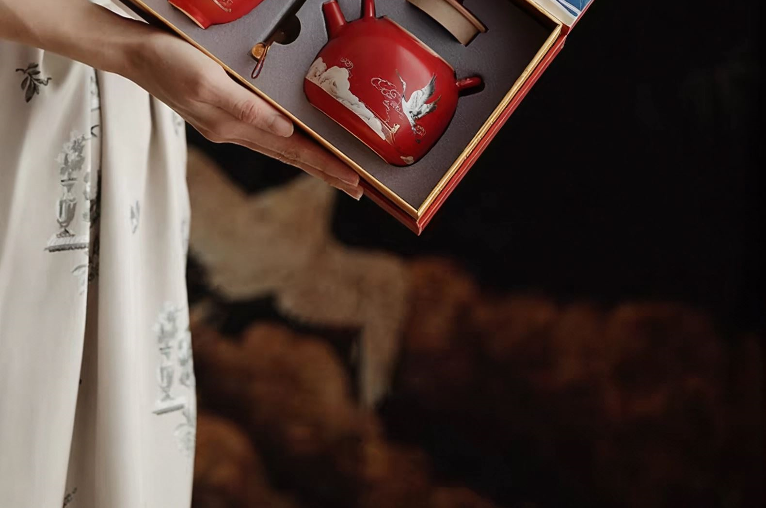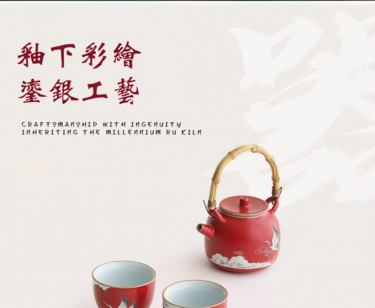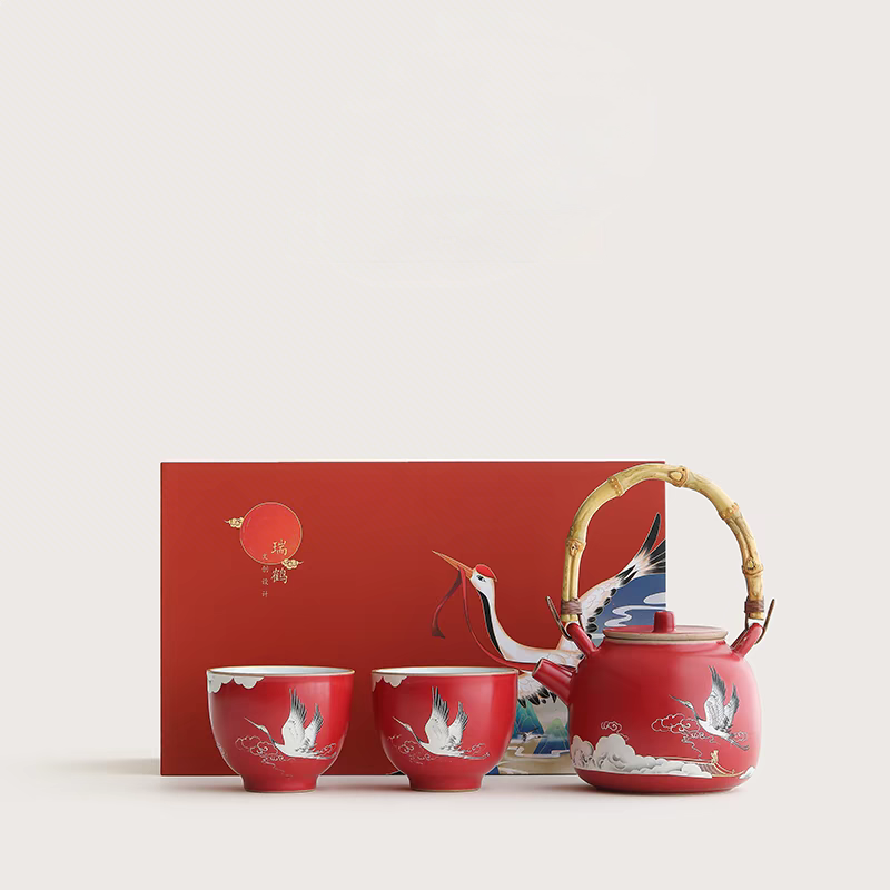 尾桥下窑故宫文创瑞鹤呈祥提梁壶茶具小套装开门红会议商务礼品