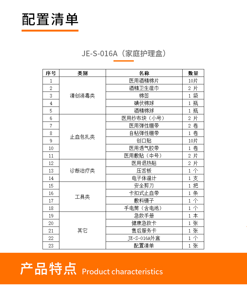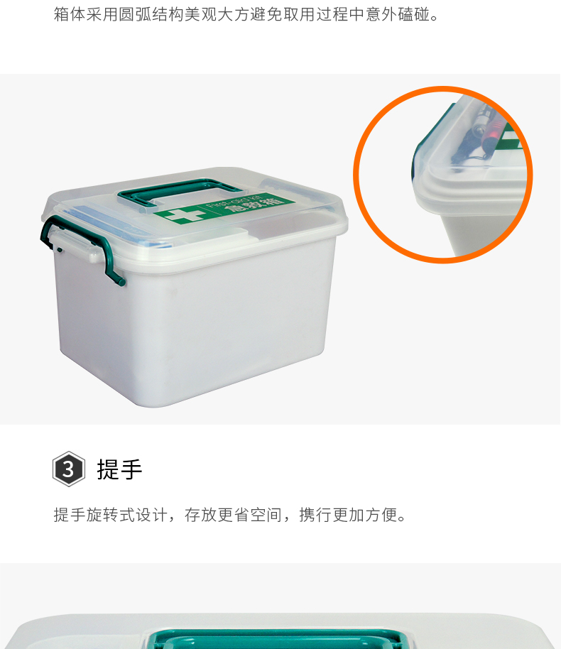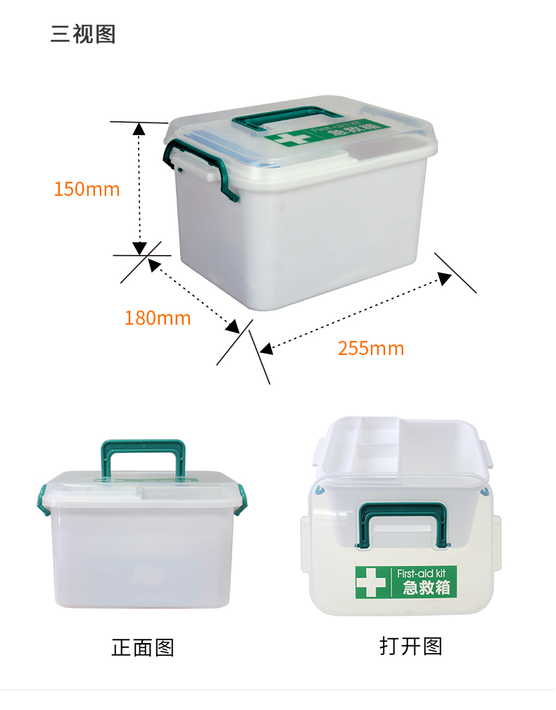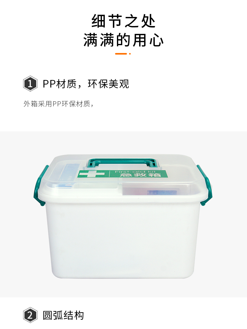 产品材质:PP塑料 产品规格:255*180*150mm 产品颜色:白色 产品配置: 含5大类23种急救用品