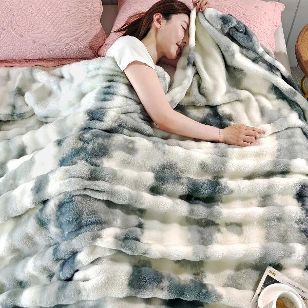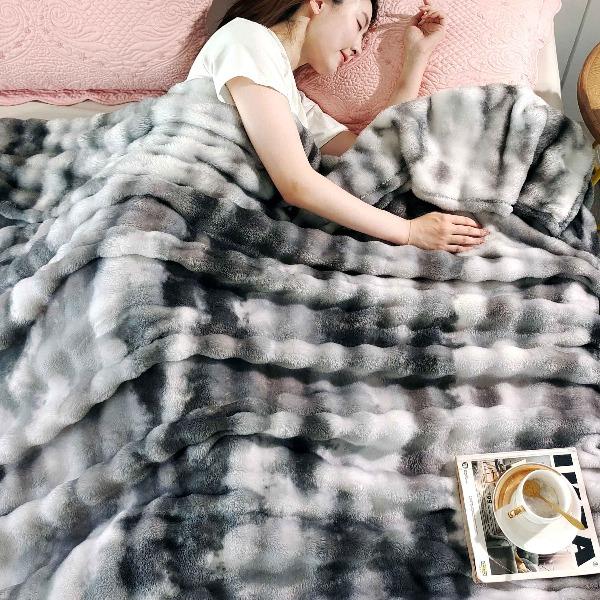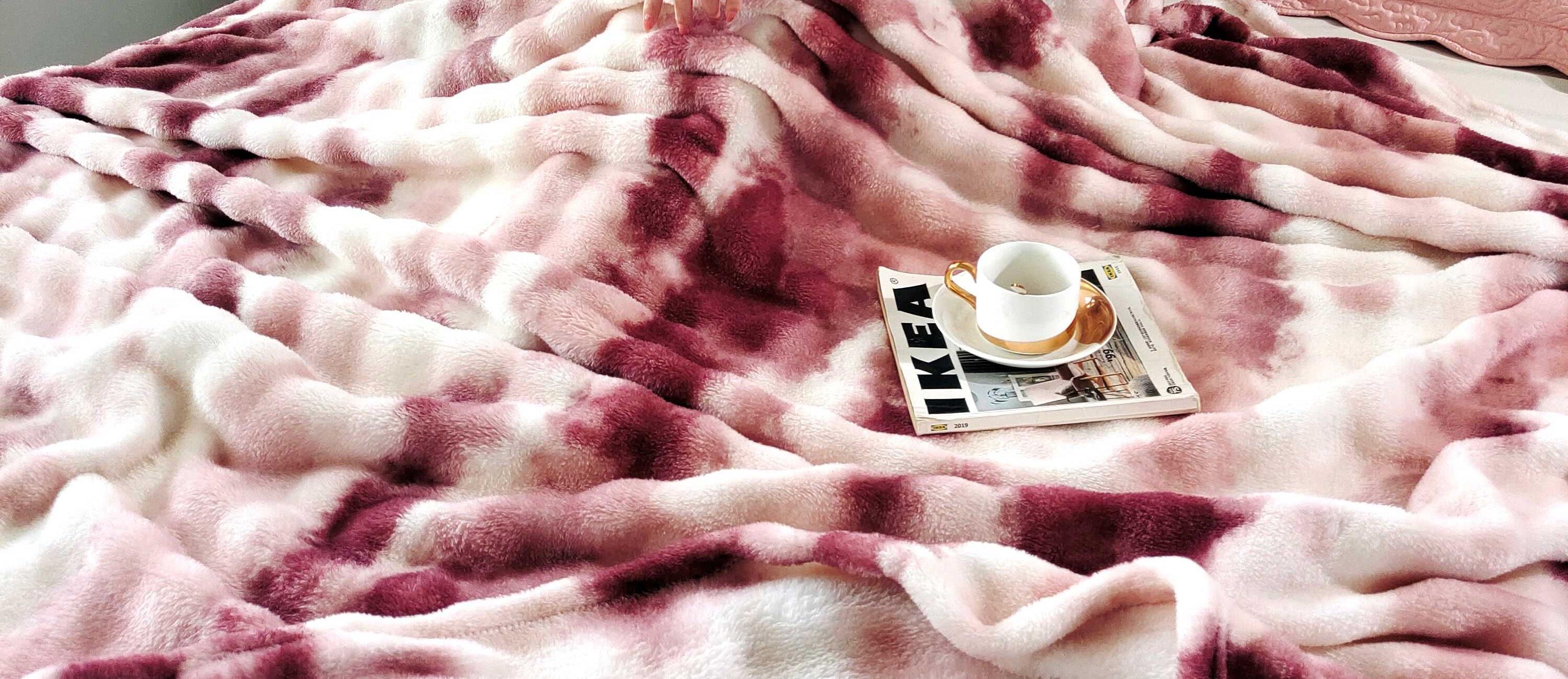 花花公子-家纺-炫彩水墨画仿兔毛绒大泡泡绒印花法兰绒毛毯
