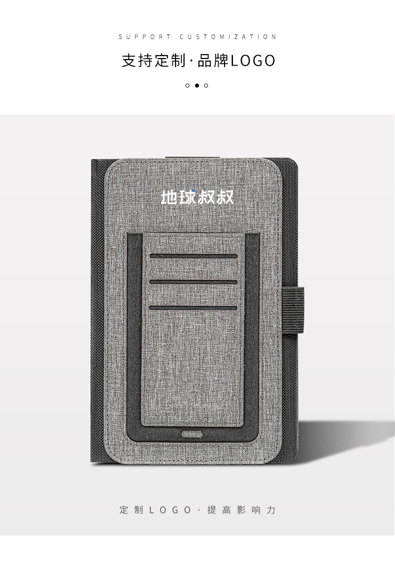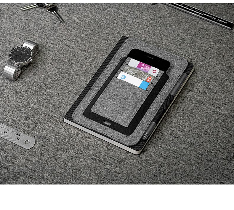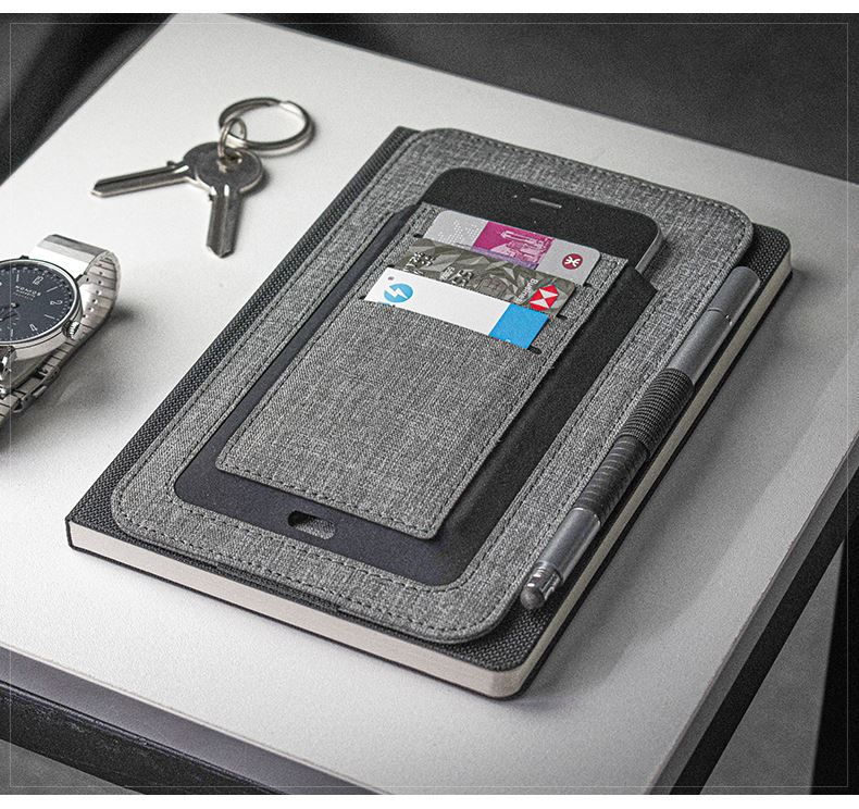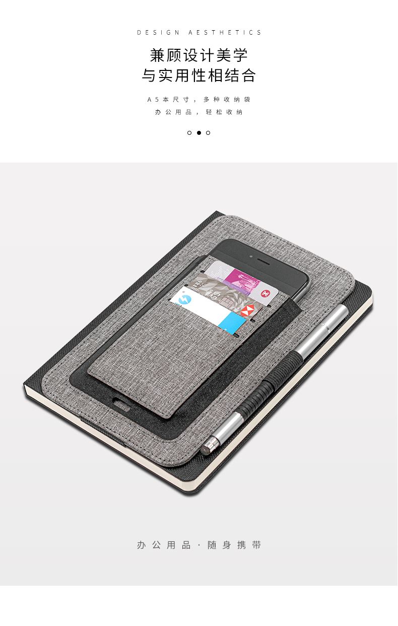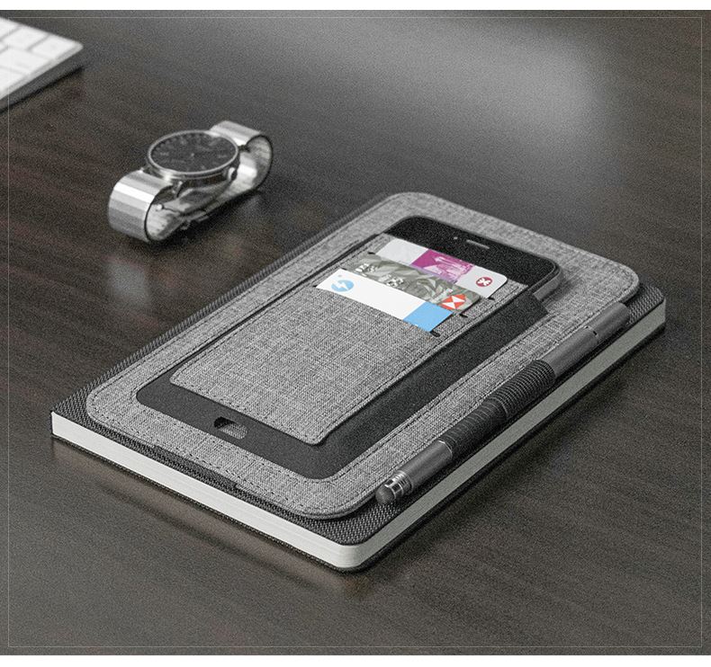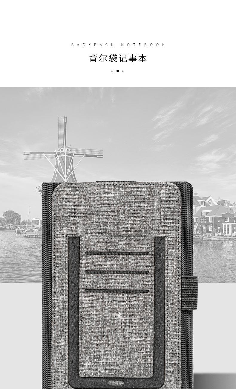 1.记事本Eco, 带有可拆卸的实用腰带收纳“背尔袋”。这款 精装硬纸卡笔记本融合了过去与未来, 配备实用腰带收 纳, 配有集成卡夹、笔环和手机袋等功能。 2.笔记本封面和可拆卸实用收纳“背尔袋带”均由可回收得 PET 聚酷 聚酷瓶材质材质制成。此外, 这款 A5 横格记事 本采用创新的线迹装订, 可在任何水平面上打开, 并采用 适合钢笔的无酸纸。 3.尺寸: 142 x 210 毫米,可丝印单色logo,标准黑色纸盒包装,含封套不含笔,标准装:30.5*24*23cm/20pcs/8kgs