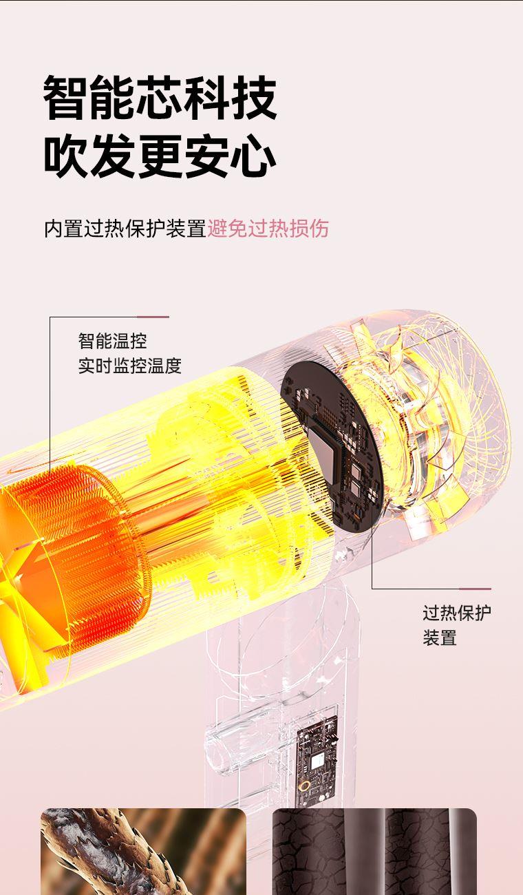 2亿级负离子技术护发功能,深U型层叠发热丝