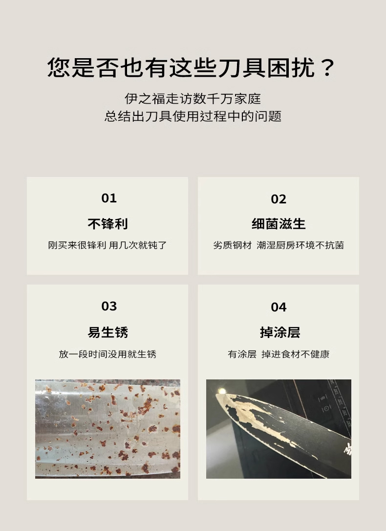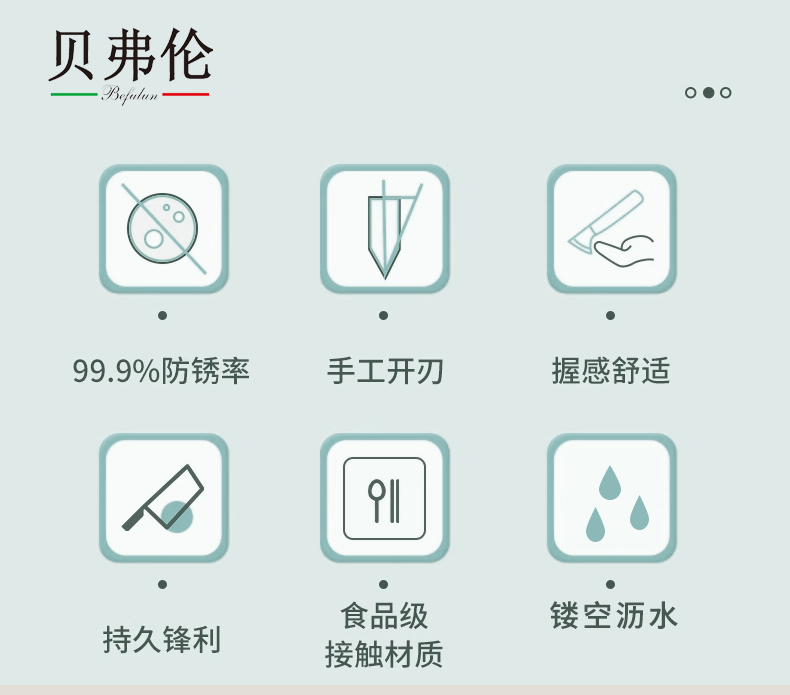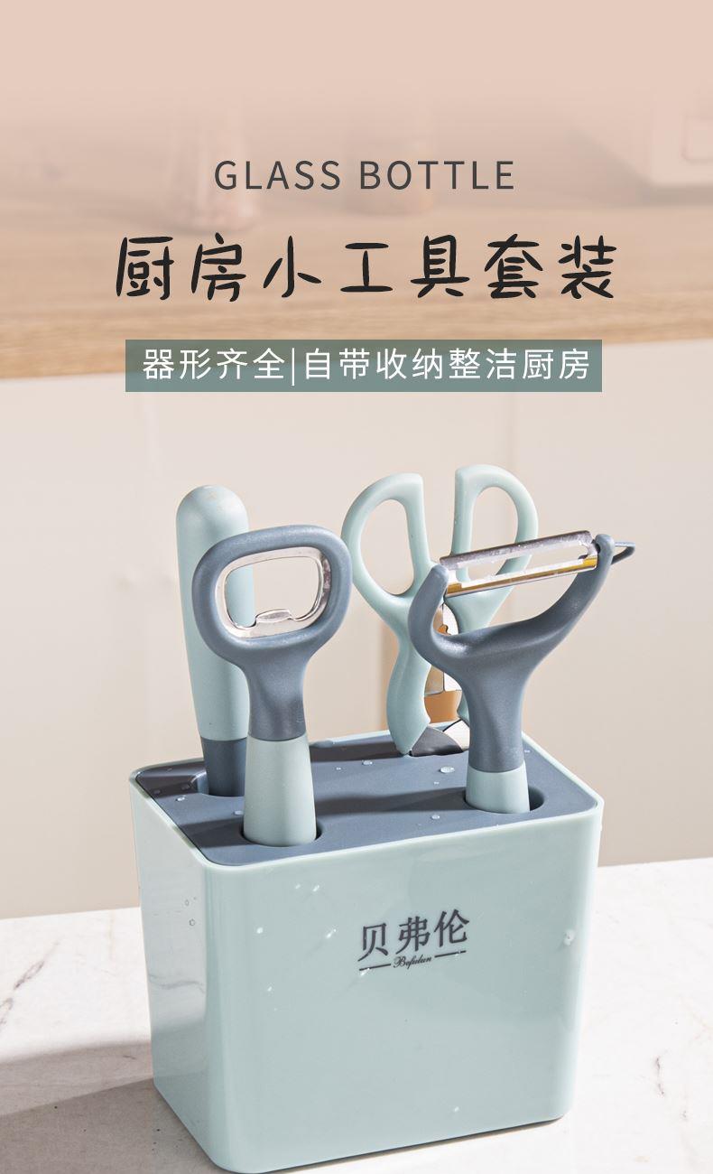 实用厨房套件,小巧多样、功能齐全,家庭生活理想之选 硅胶手柄不脱手、易用力,减少长久使用带来的疲劳感 独特湿式开刃,采用先进淬火热处理工艺,持久锋利