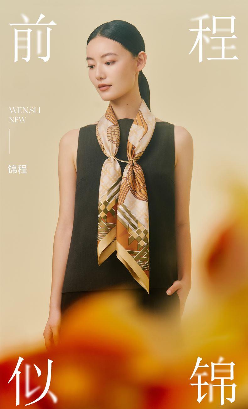 锦程-双面印花大方巾万事利2026春夏专柜新品