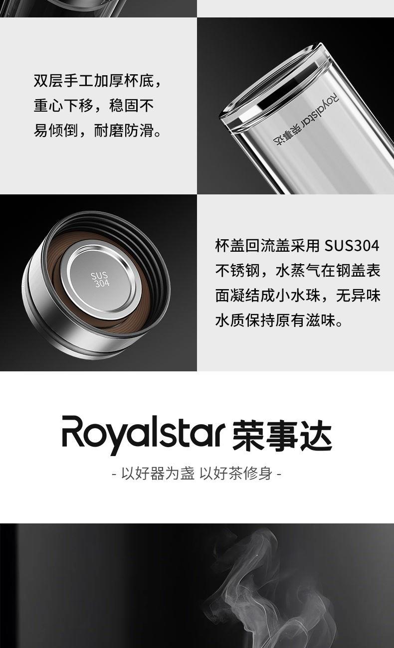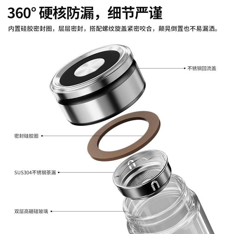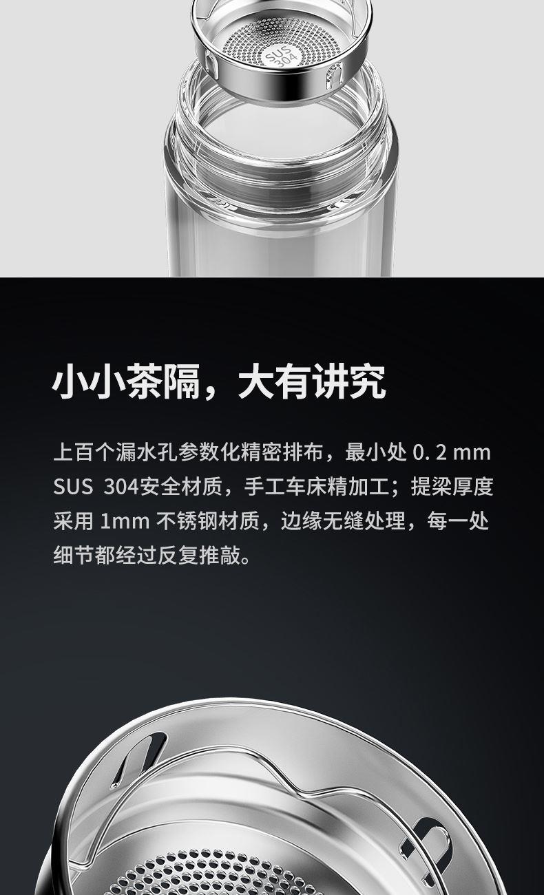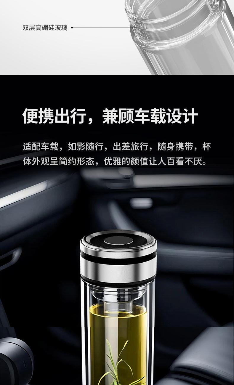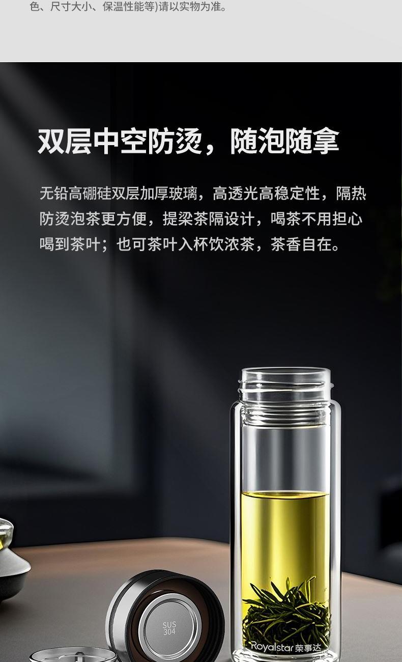 产品型号:RSDBJ014-FJ 产品容量:320ML 产品尺寸: 6.5*6.5*19.5 cm 产品材质:高硼硅玻璃+不锈钢 彩盒尺寸: 7.2*7.2*21cm 外箱尺寸:38.5*38.5*44cm 采用双层高硼硅高透明玻璃构造,经600多度的高温烧制而成,新型绿色环保,晶莹剔透,质感好; 双层玻璃隔热不烫手,延缓温度流失。 优质食品级PP组杯盖加以不锈钢内塞,工艺严谨,造型简约大气,手感细腻舒适。