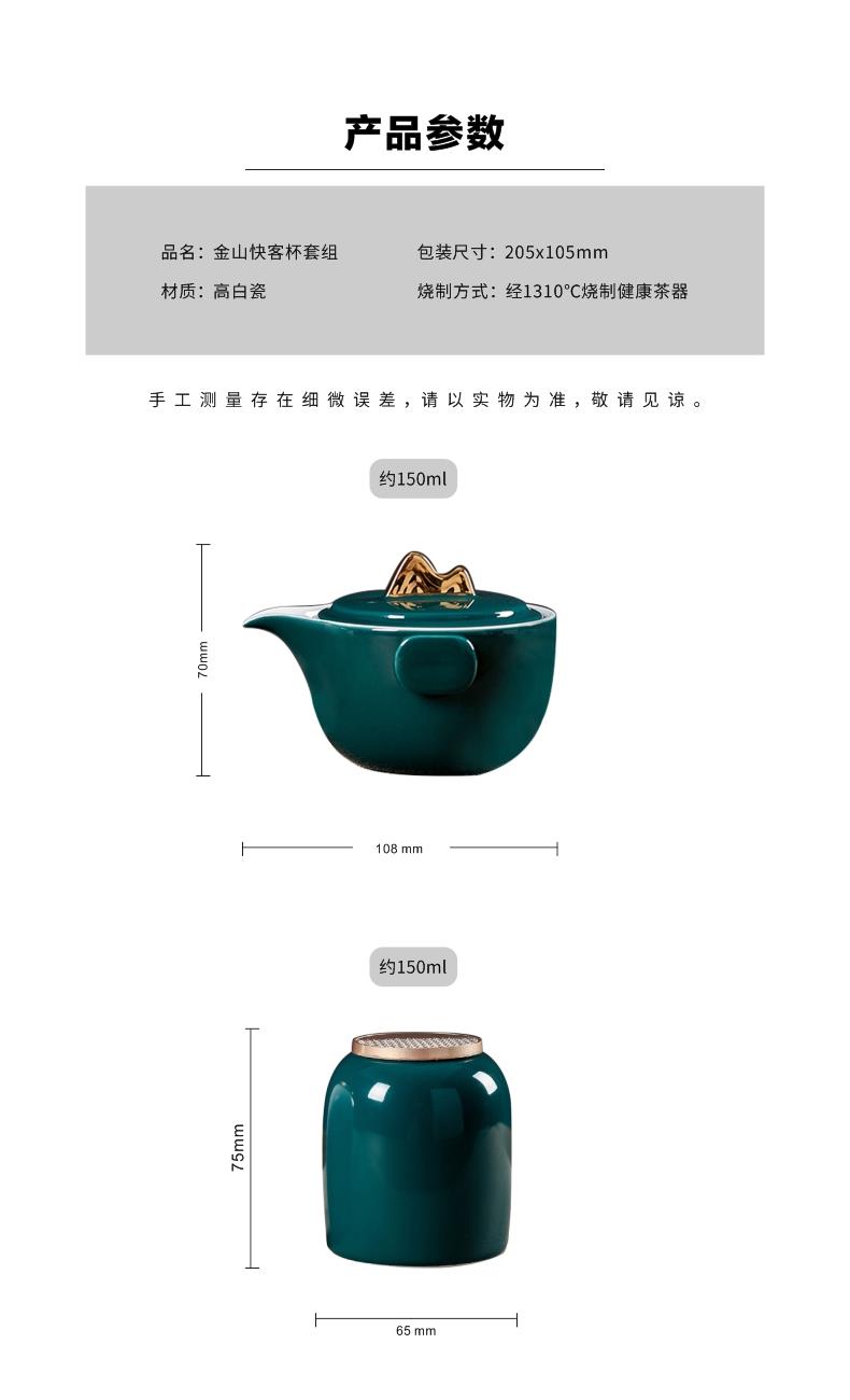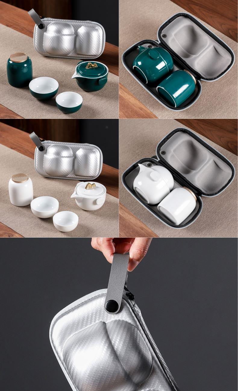 定制报价:根据具体要求定制LOGO,费用另算。 组件:一壶两杯+茶叶罐+皮包。 包装规格:20.5*10.5cm。 材质:高白瓷。 定制:产品及包装可定制logo。 釉色:白色/绿色。