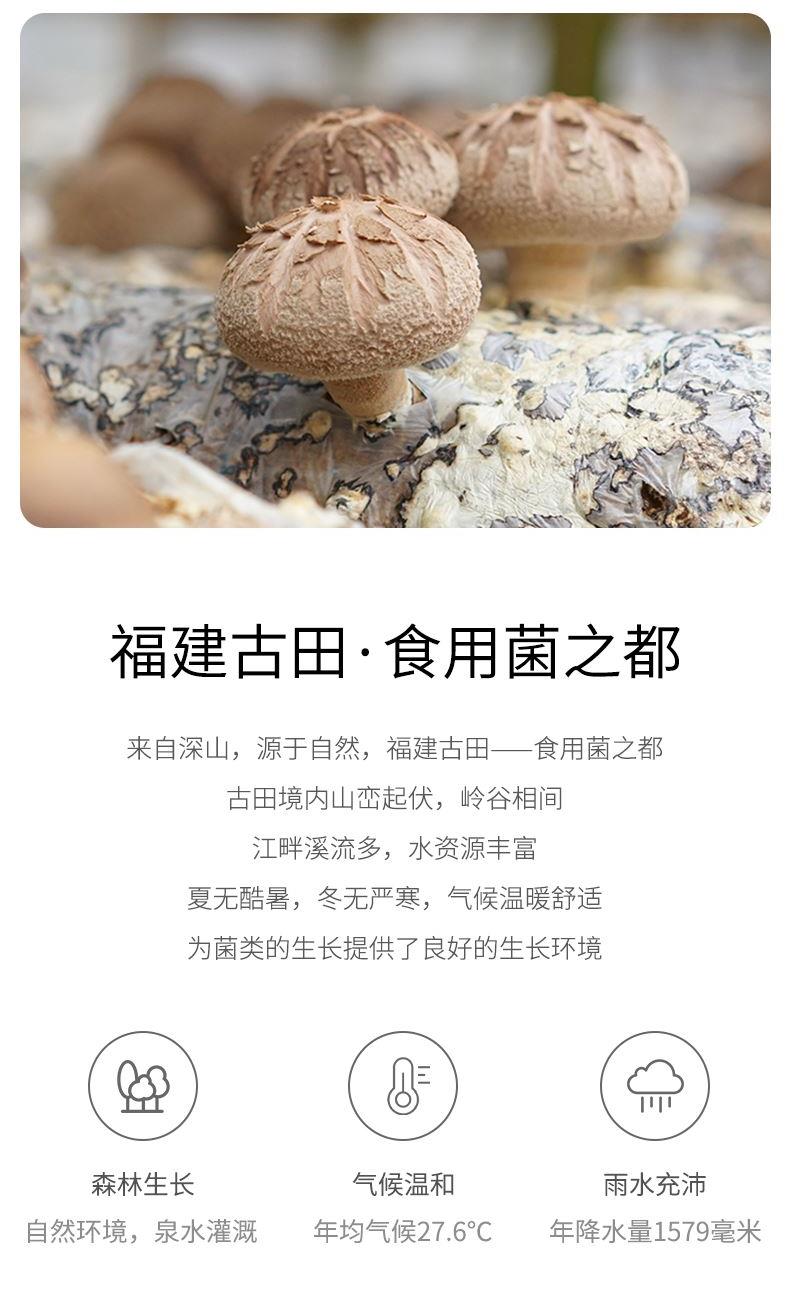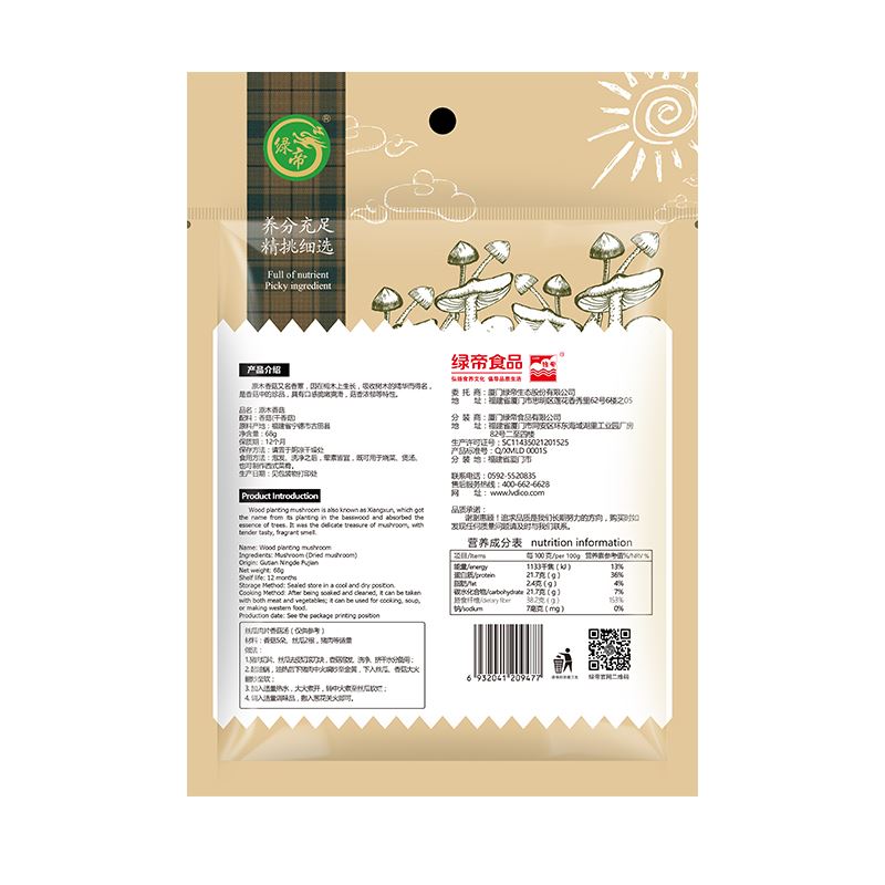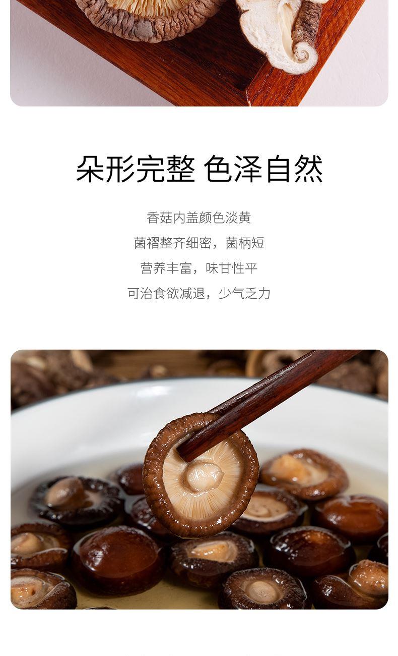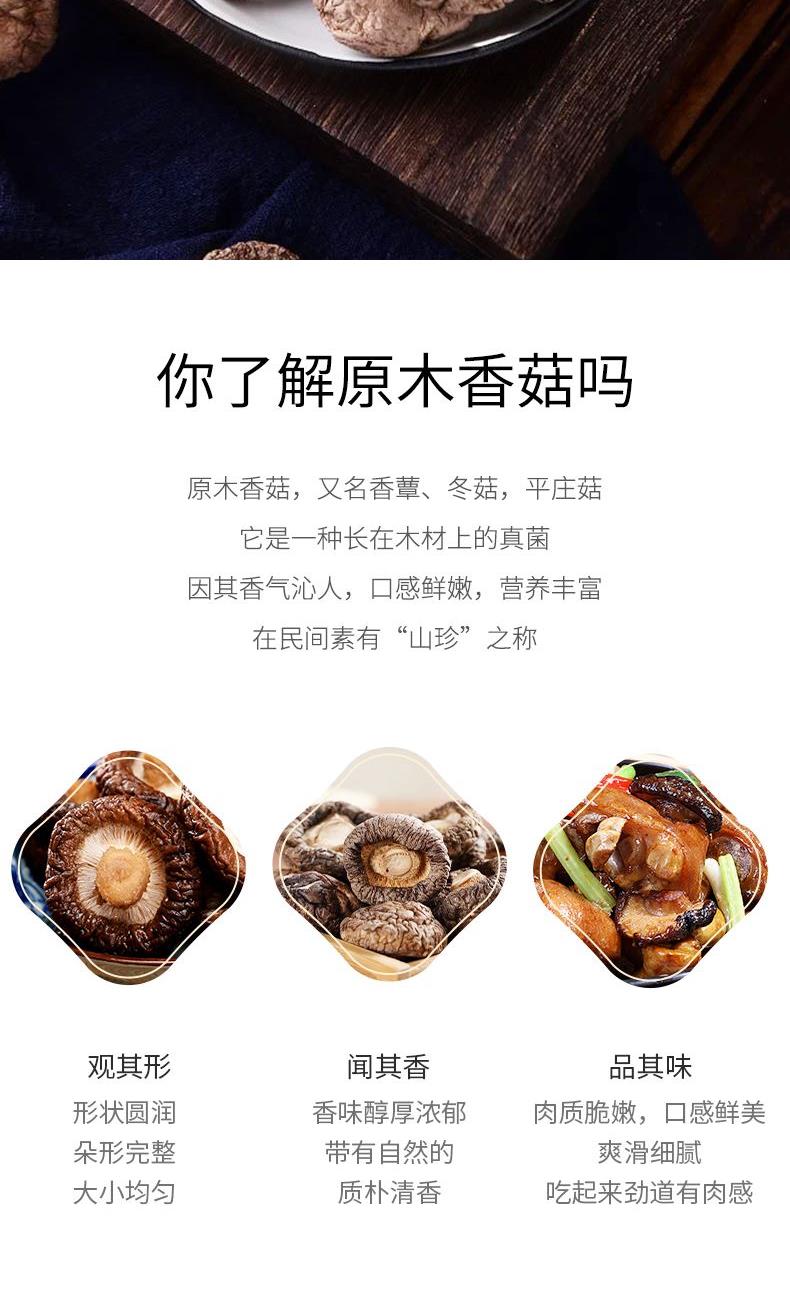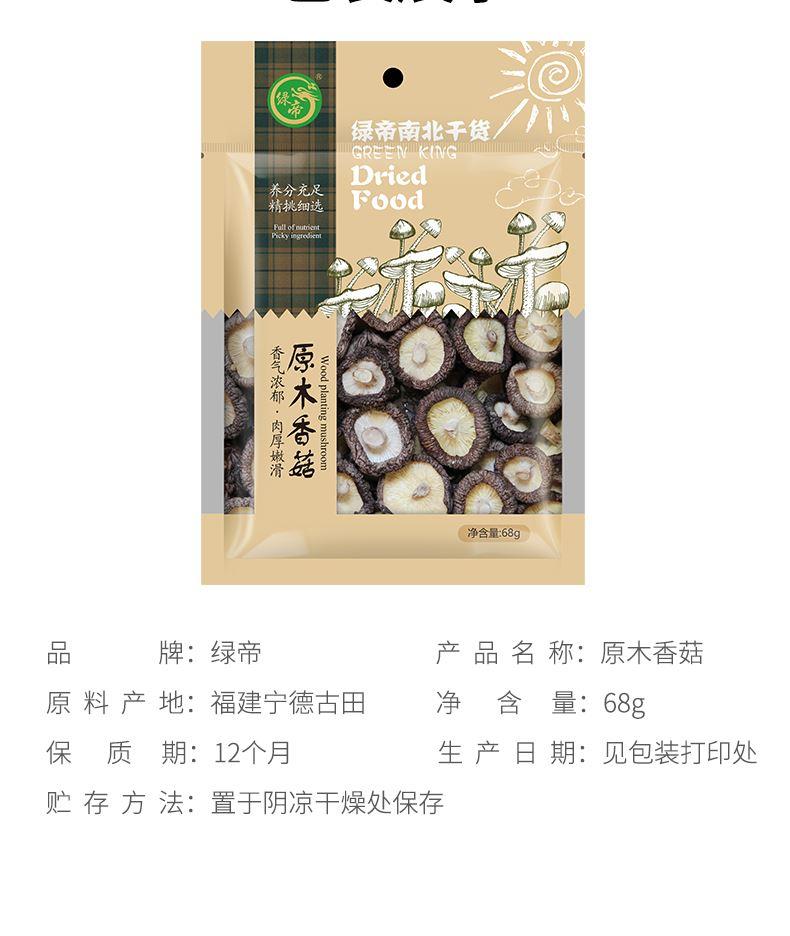 配料:香菇 原料产地:福建省宁德市 净含量:68克 保质期:12个月 生产日期:见包装物打印处 食用方法:用清水浸软洗净后,可煮、炖、炒、烩等。 香菇,又名香菌等,是长于木材上的一种真菌,含有一种独特的菇香,故而得名。香菇肉质滑嫩,味道鲜美,香气沁人。