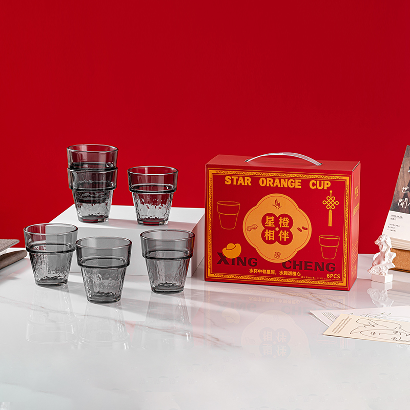 货号:A-XC/L6 星橙六件套(烟灰/橙色) 规格:16套 组合:杯*6(180ml) 产品卖点:星橙玻璃杯,加厚玻璃材质,圆润杯口贴合唇感,饮用顺滑,厚底防滑稳固,放置桌面稳如磐石,「活力橙」与「雅致烟灰」两款配色,橙色如暖阳点亮餐桌,烟灰似墨韵沉淀质感,简约线条勾勒现代美学,适配北欧风、轻奢风等多种家居风格,轻松融入生活场景,一手可握,独饮尽兴、共饮温馨 彩盒尺寸:21.1*8.1*17.1CM 外箱尺寸:44*34.6*36.2CM 重量:16.5KG