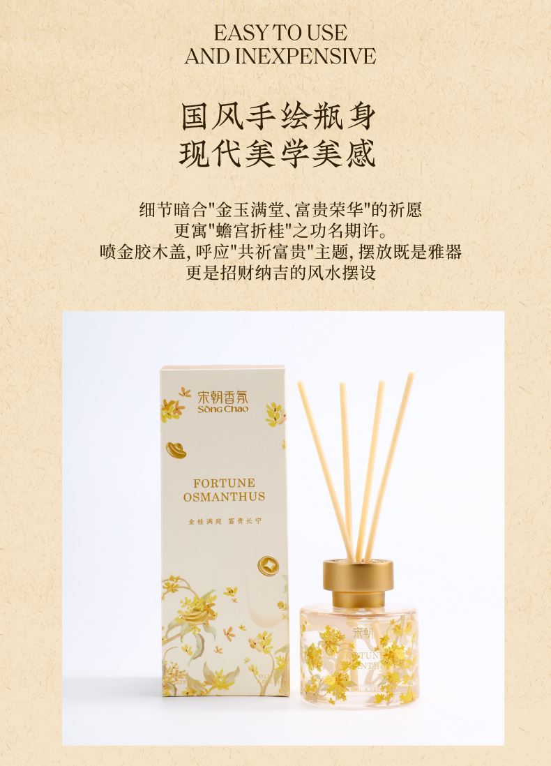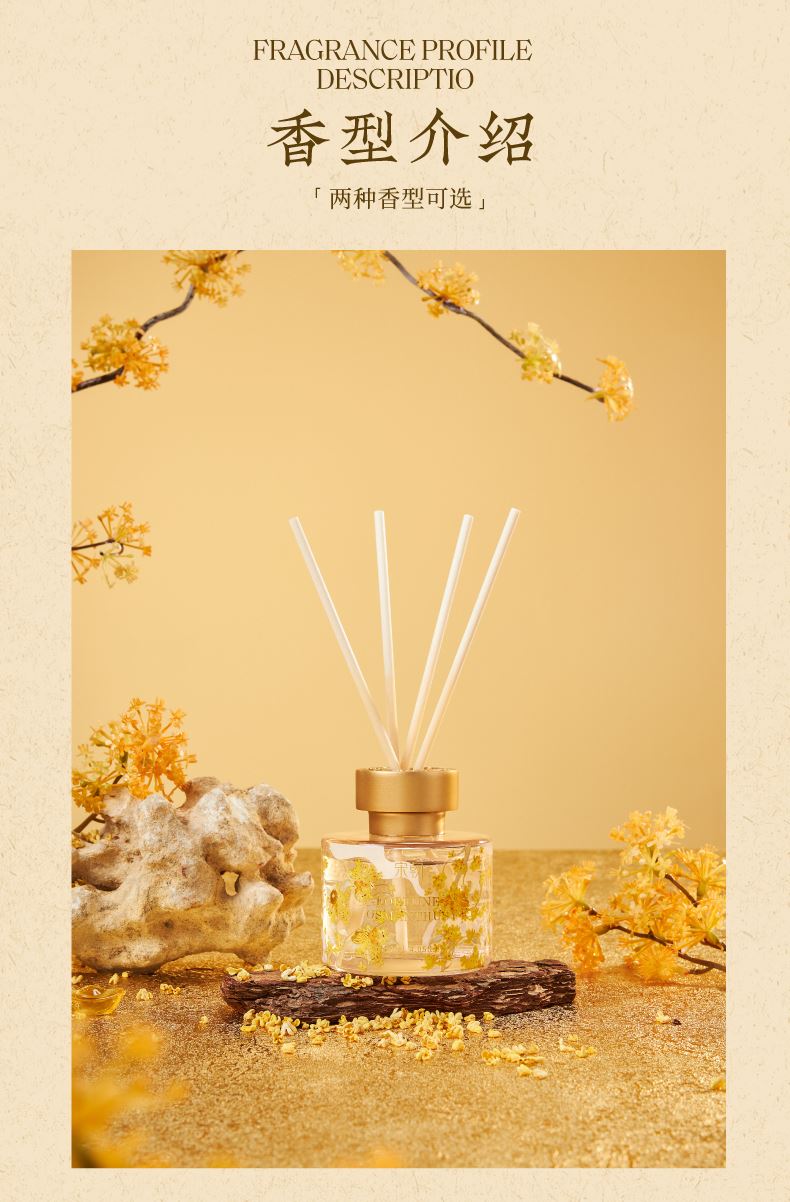 【规格】无火香薰净含量:120ml 【香型】月下赴桂(复合型桂花香)、月中寻桂(还原型桂花香) 【生产日期】见包装喷码 【保质期】未拆封3年 【储存方法】请置于阴凉处,避免阳光直射