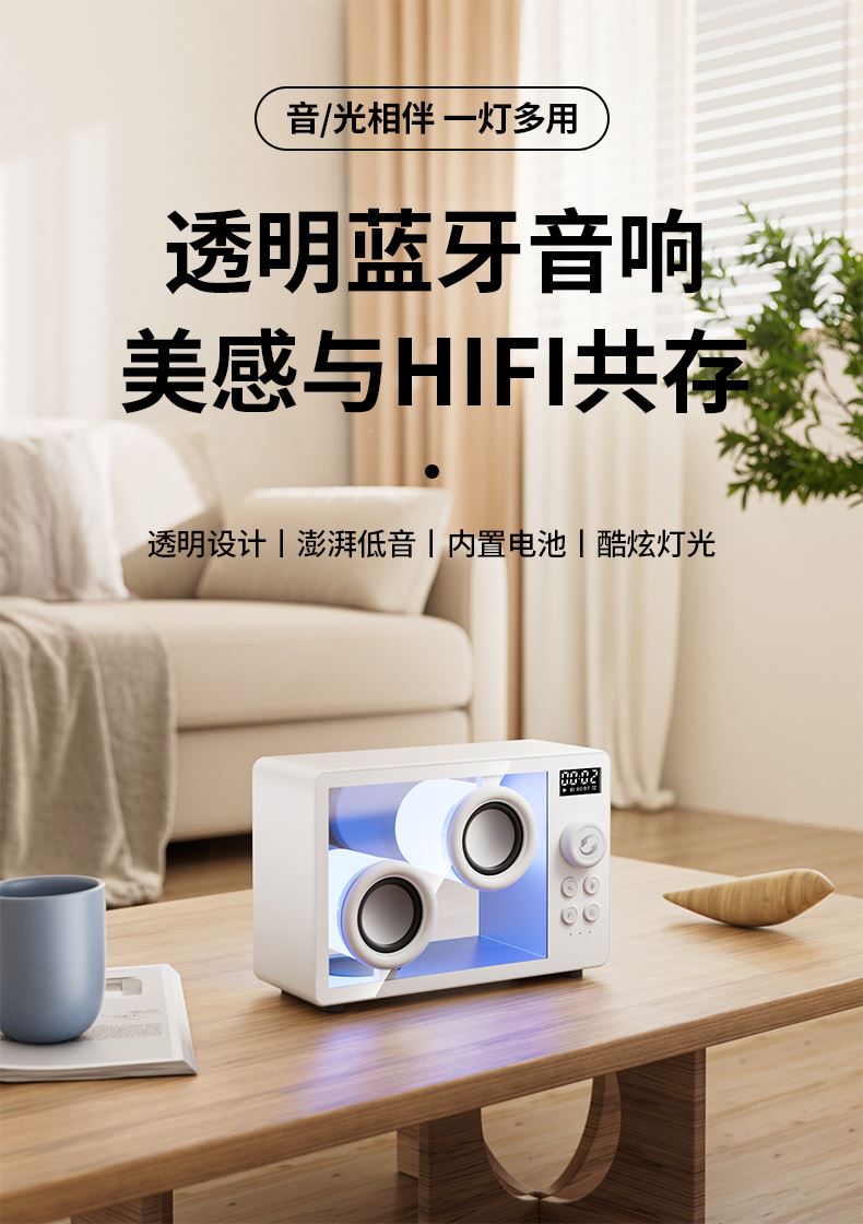 右心K02高颜值透明蓝牙音箱双喇叭小音响可定制