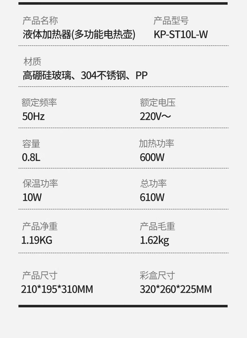 • 夏普液体加热器(多功能电热壶)KP-ST10L-W
