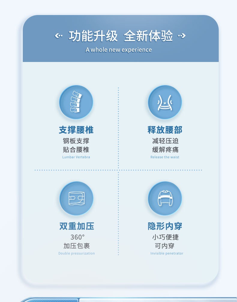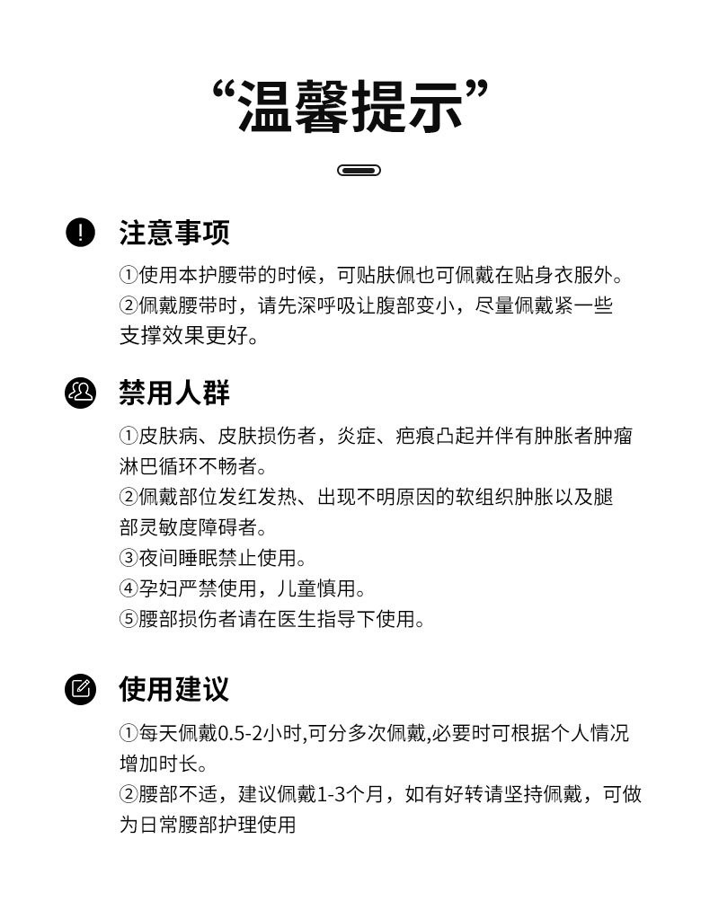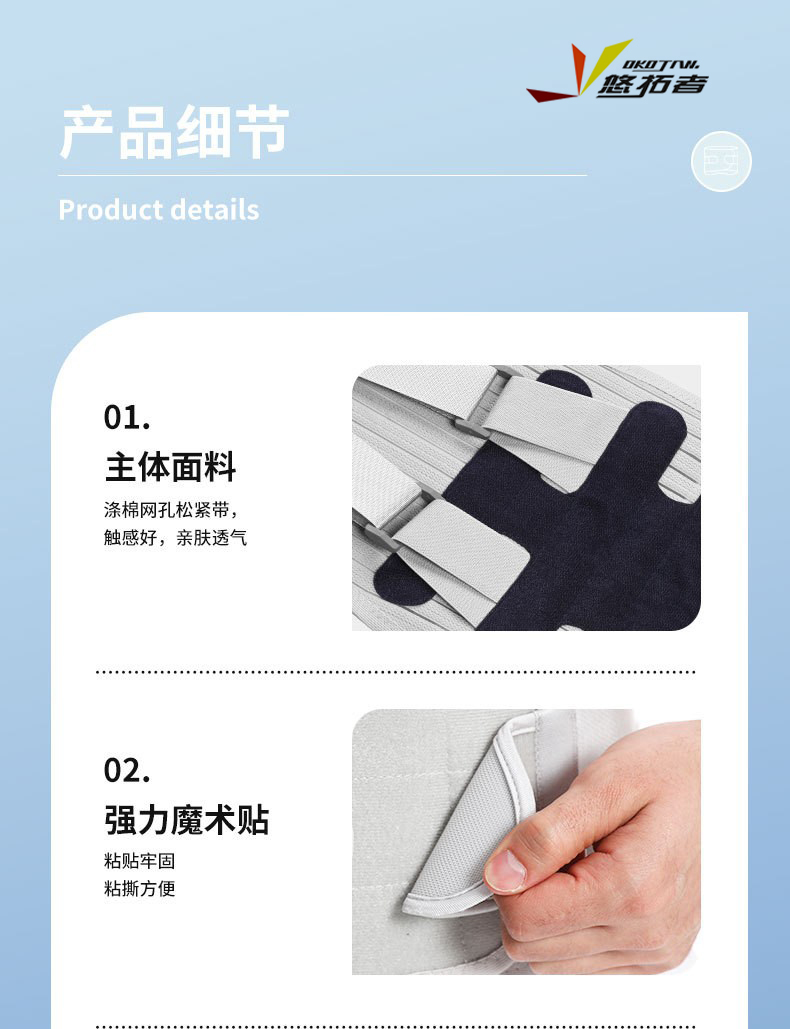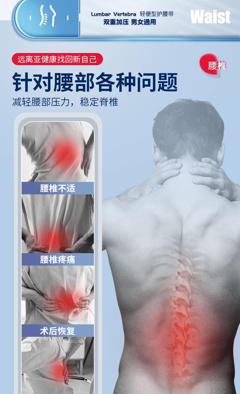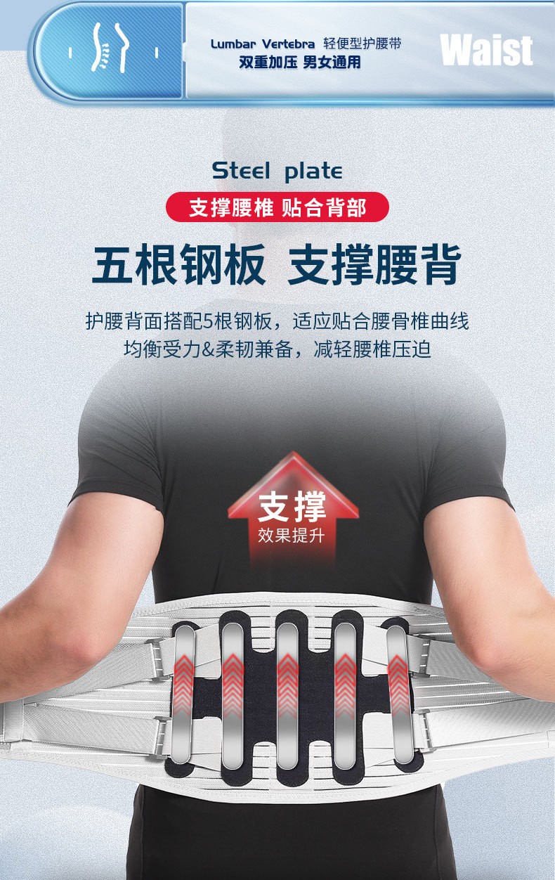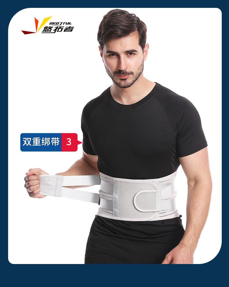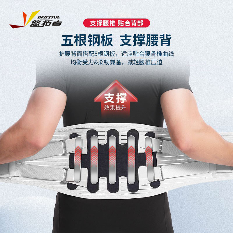 货号:YT-JK006 配置:护腰X1+垫片X3 规格:M/L/XL/XXL 材质:牛津布、松紧螺纹、钢板 颜色:图片色 产品描述: 1.透气网面,舒适不闷热 2.腰部支撑,保护腰椎 3.弹力织带,支撑钢板,双重固定防护 4.适用人群:久坐、腰椎不适、运动防护、产后塑性等人群