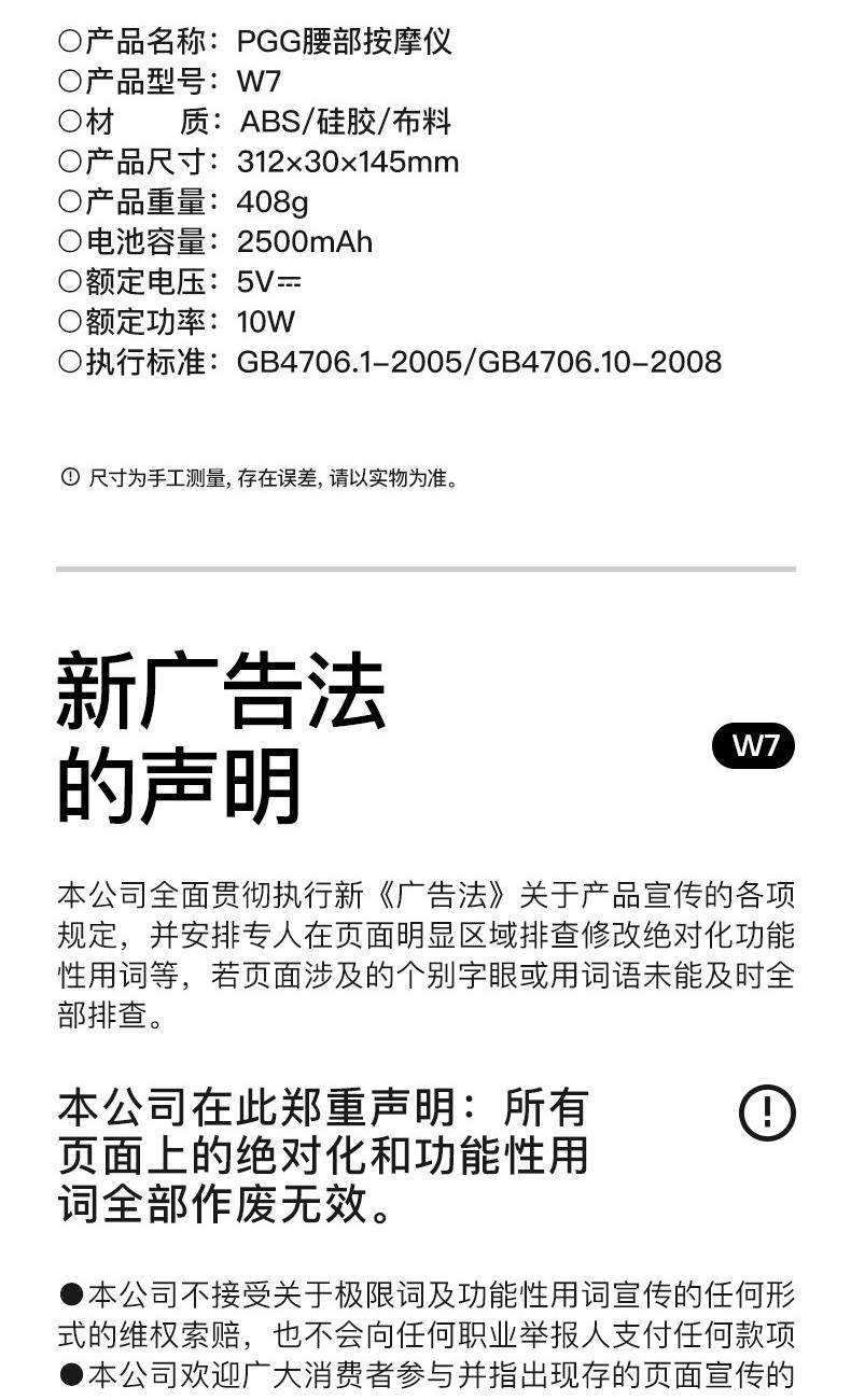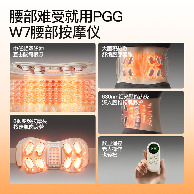 PGG腰部按摩器按摩仪护腰带暖宫腰带腰间盘突出热敷W7白