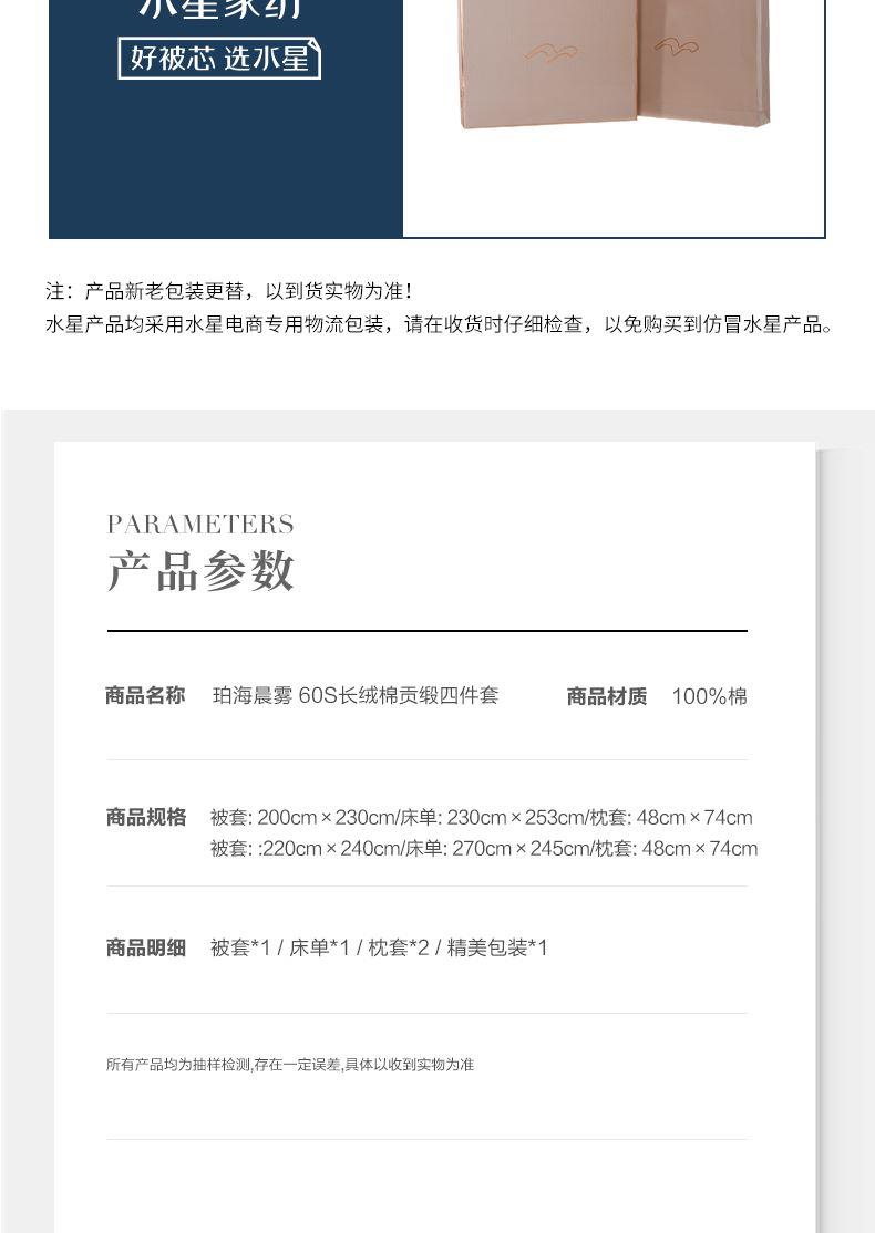 水星家纺60s刺绣全棉四件套珀海晨雾220×240cm
