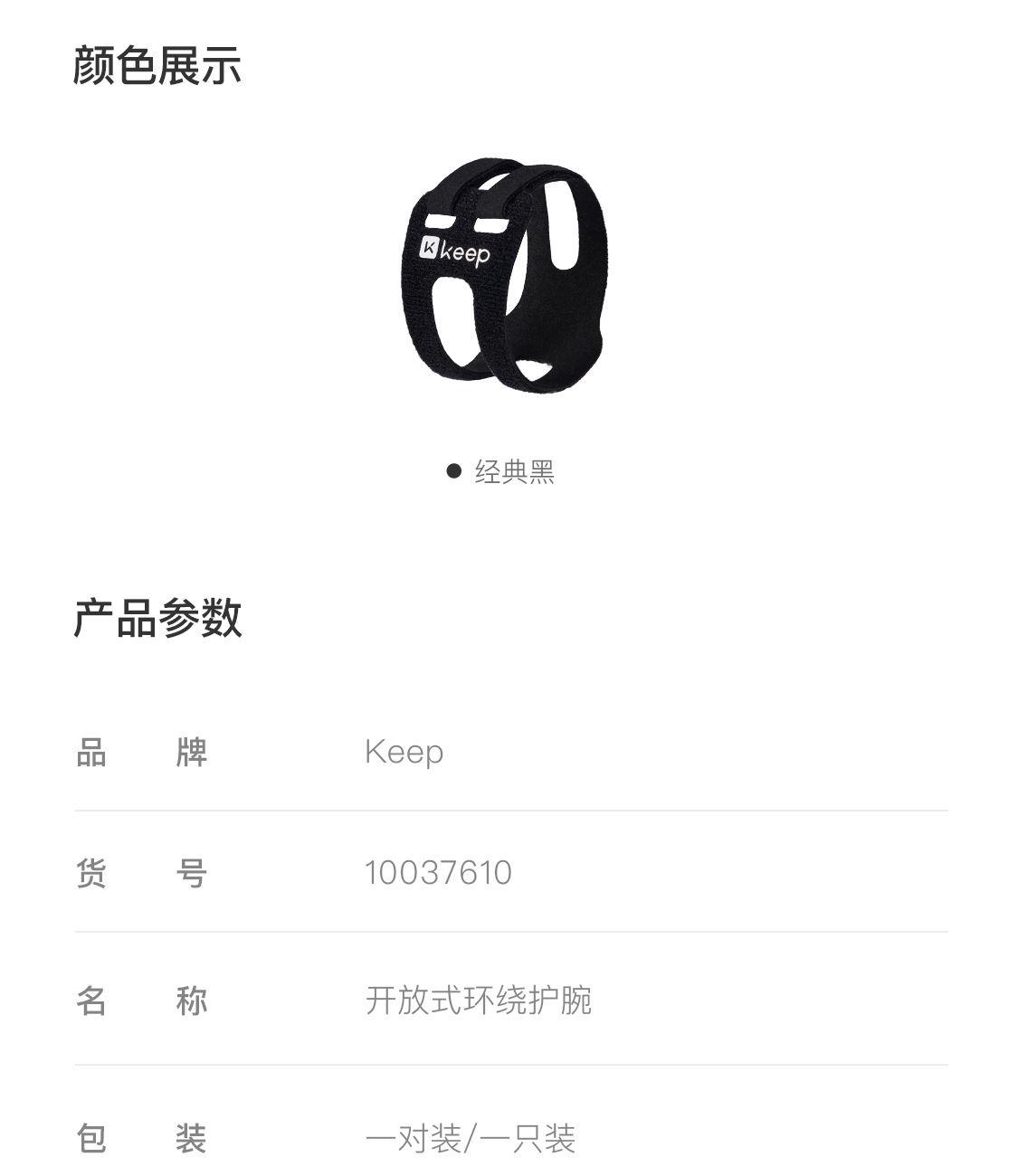 Keep开放式环绕护腕经典黑【一对装】
