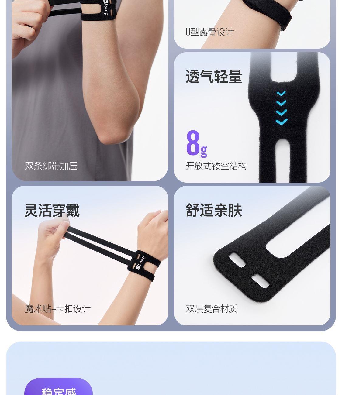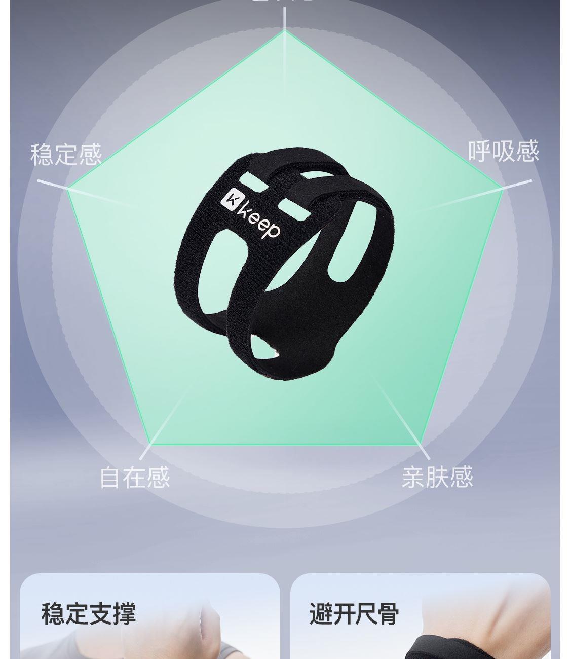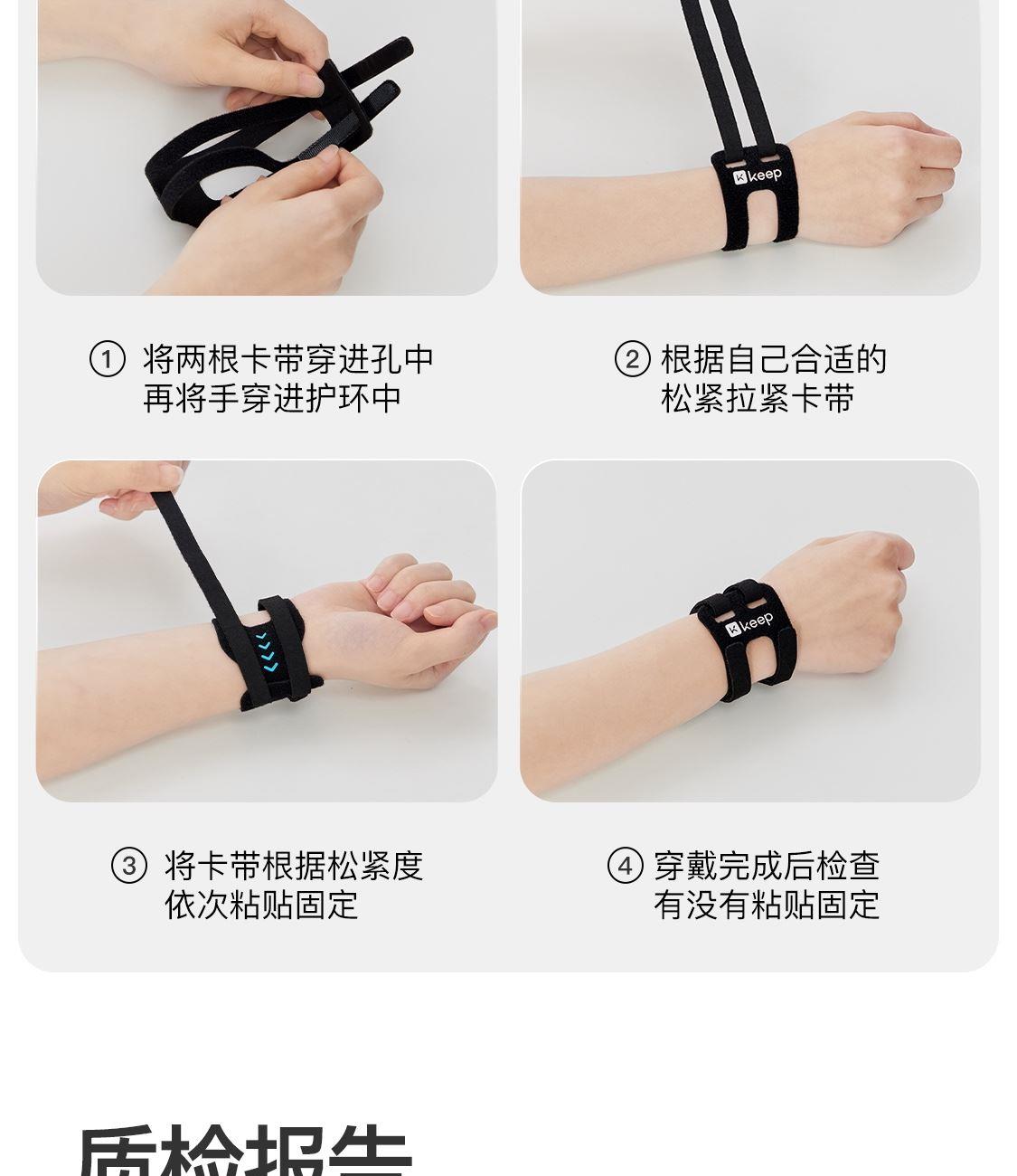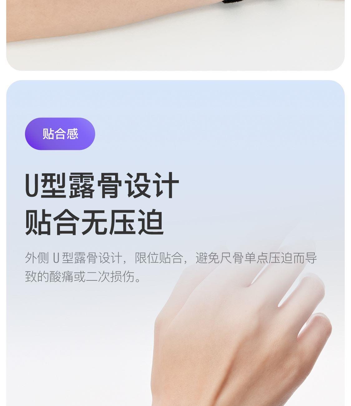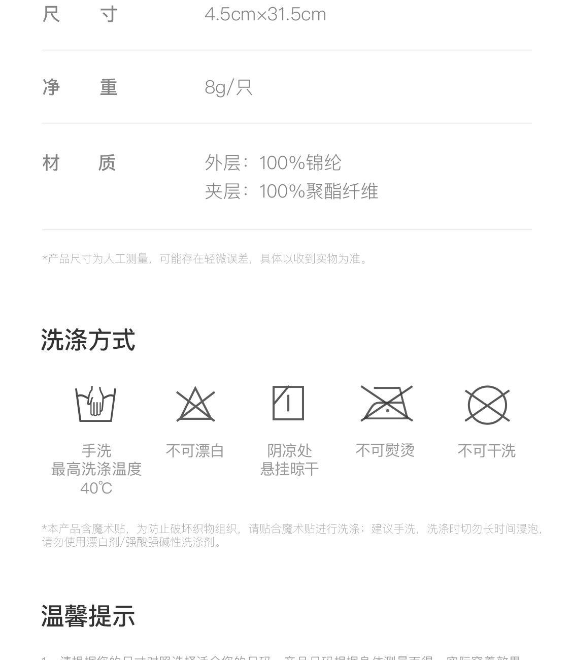 尺寸:4.5cmx31.5cm 净重:8g/只 材质:外层: 锦纶 夹层: 聚酯纤维 稳定支撑 避开尺骨 透气轻量 灵活穿戴