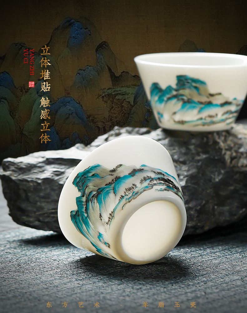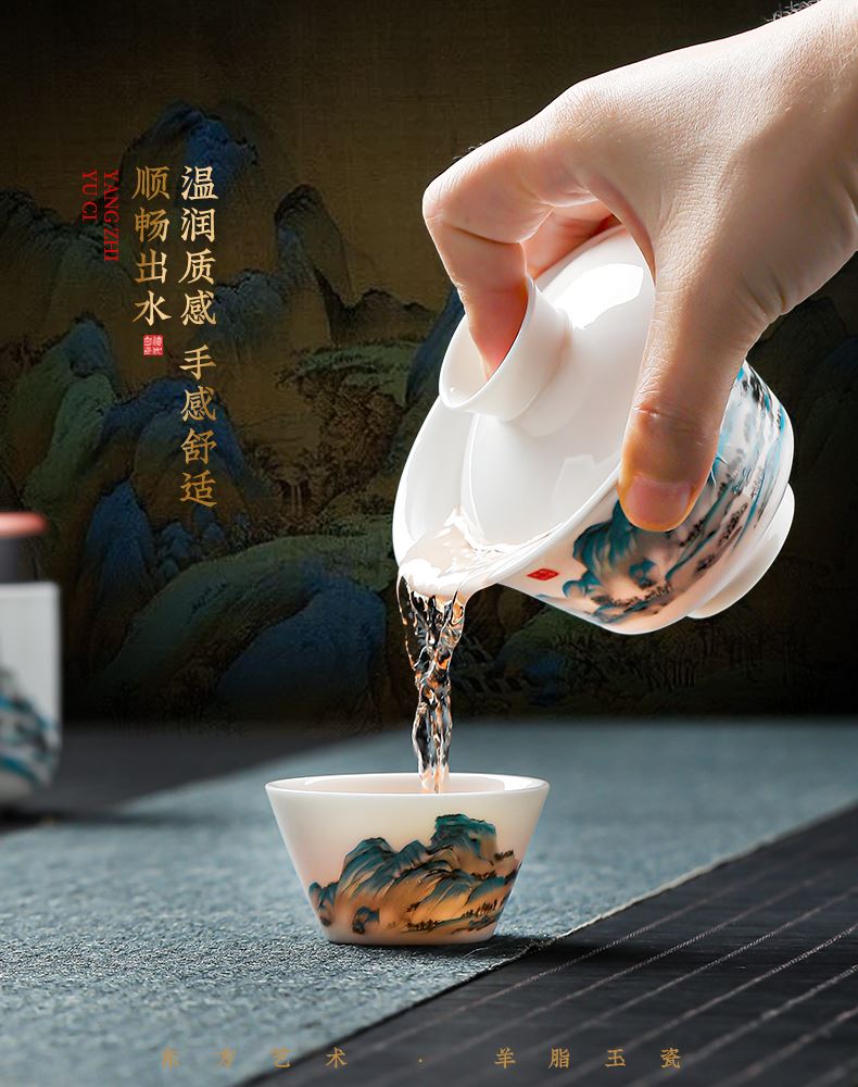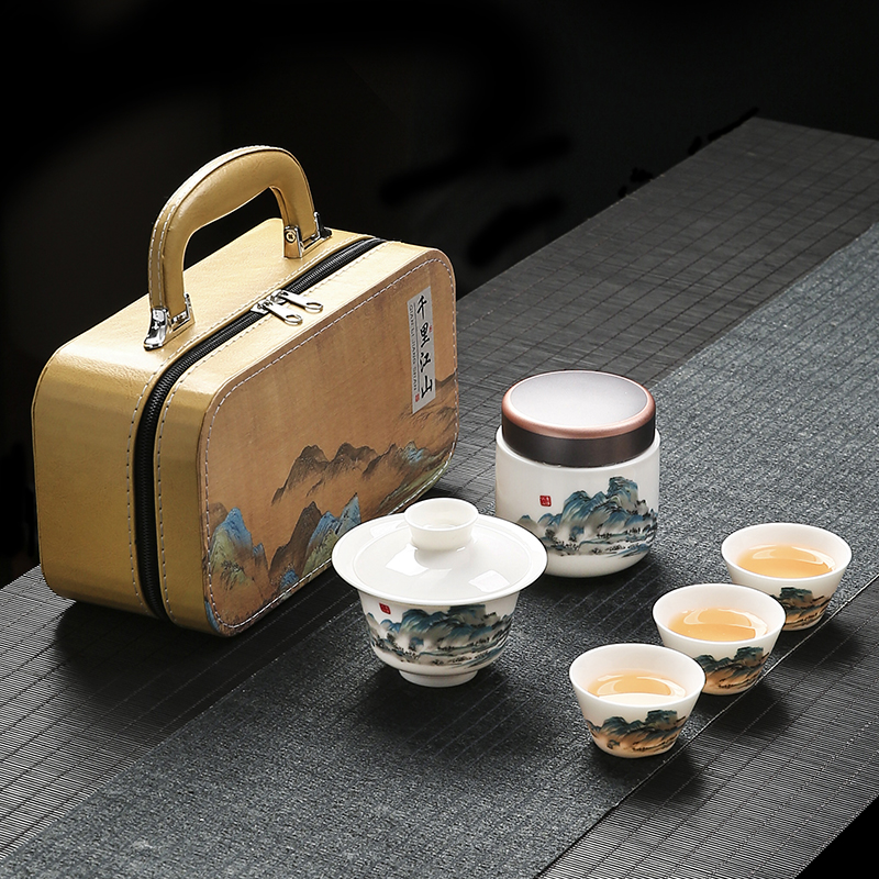 瓷伽什江山青绿羊脂玉旅行茶具