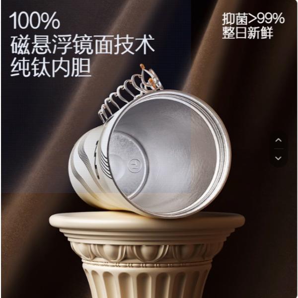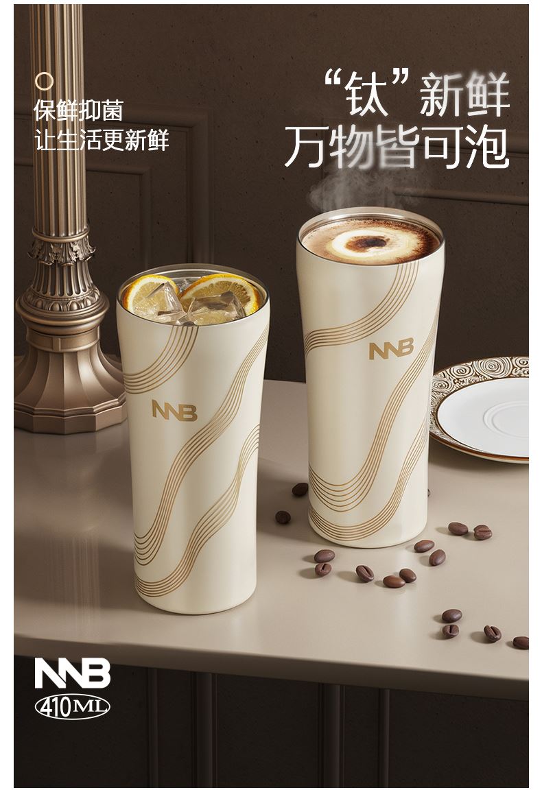 容量:410ml 带吸管内外纯钛双饮咖啡杯 中欧科技艺术融合 抑制细菌、磁悬镜面工艺技术、艺术设计 全球「磁悬镜面工艺」(0.02μm) 发明号CN202510262880.8 我们承诺:坚决不用通过强酸化学反应工艺加工钛杯。