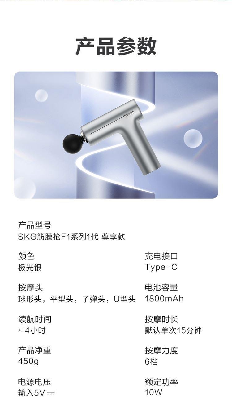 • SKGF1系列1代SKG筋膜枪银色尊享款