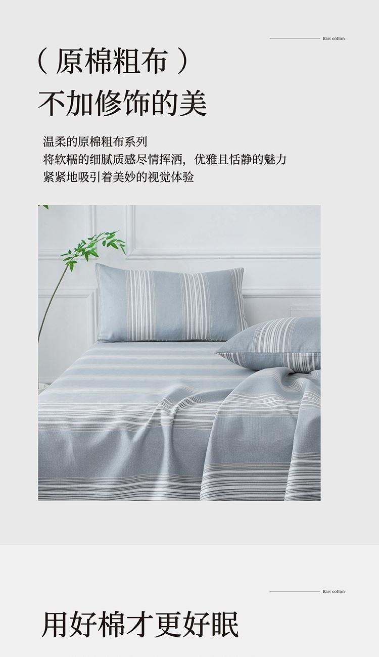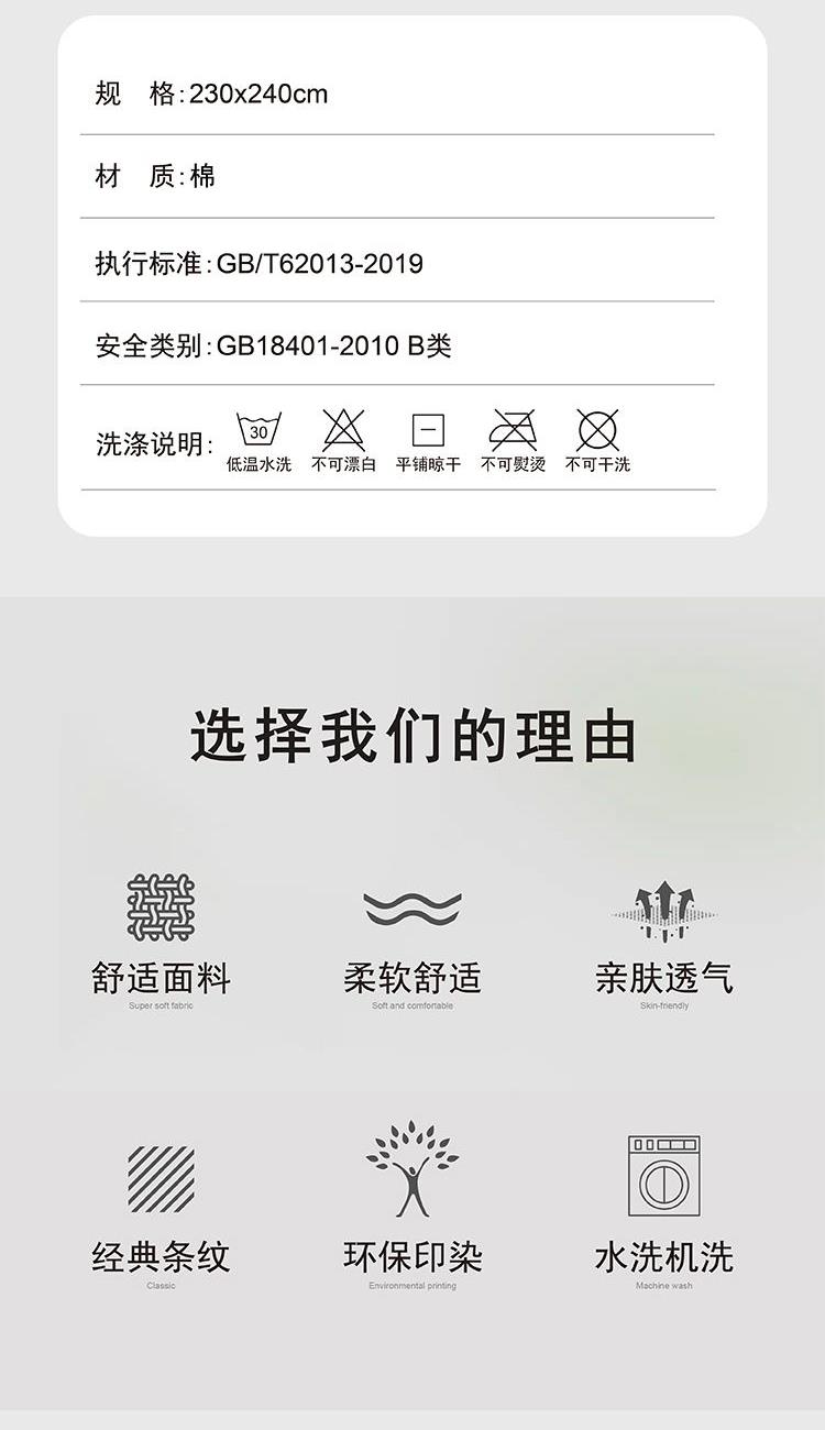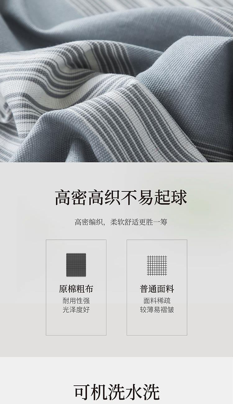 230*240cm 【材 质】棉 1.老粗布高密棉纱面料,手感舒适,亲肤透气; 2.简约设计,结合时尚与清新于一体; 3.古法印染工艺,不易褪色; 4.可水洗、机洗,色牢度高,不易褪色。